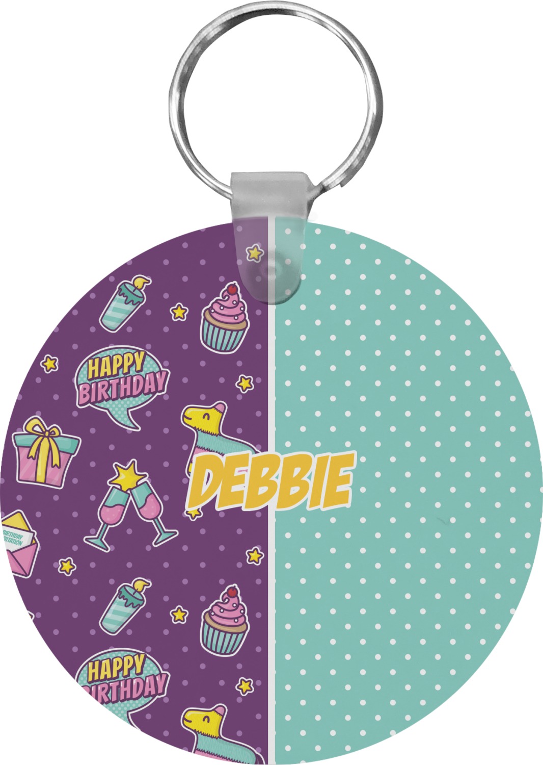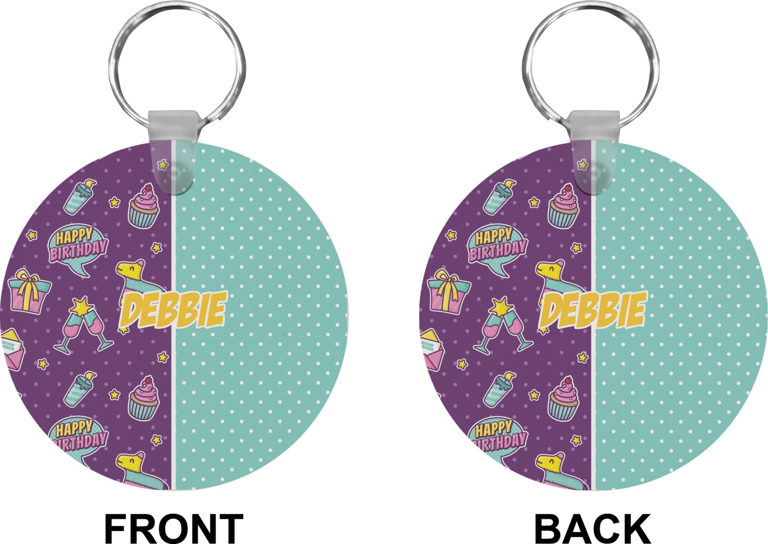 Our personalized keychains attach to the included metal, split key ring with a plastic, removable snap. Since a metal ring is included with your purchase, you have the liberty to keep your keys together on the ring, with or without your unique keychain. We offer this keychain in three different shapes: circle, heart, or diamond. We print your personalized design(s) on both sides of the key chain, and the surface has a glossy, reflective finish that only emphasizes your design. Each keychain is approximately 2.25 by 2.25 inches.