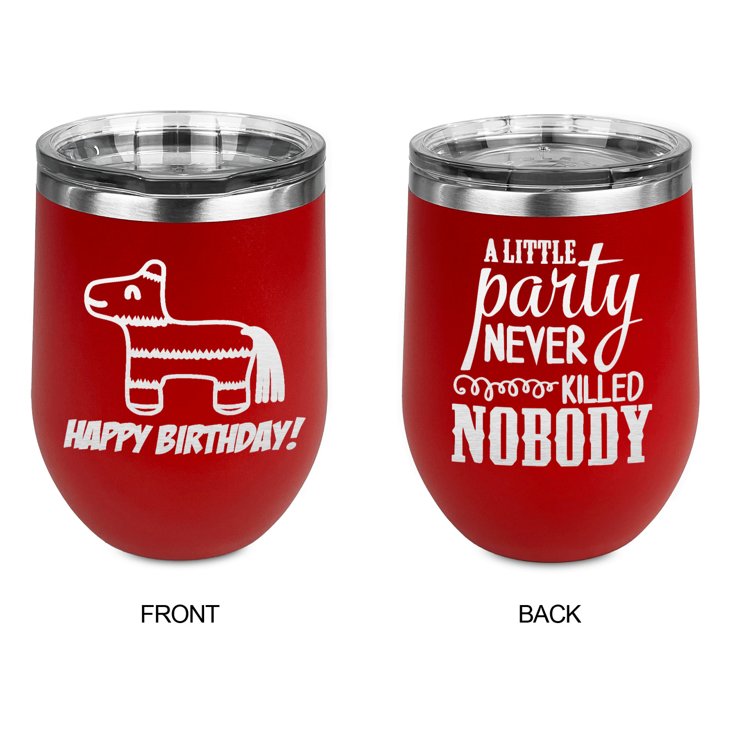 Design your wine tumbler with a cool graphic or quote. Even put your initials or monogram! These cups are laser engraved, which looks extra sharp on the metal tumbler.