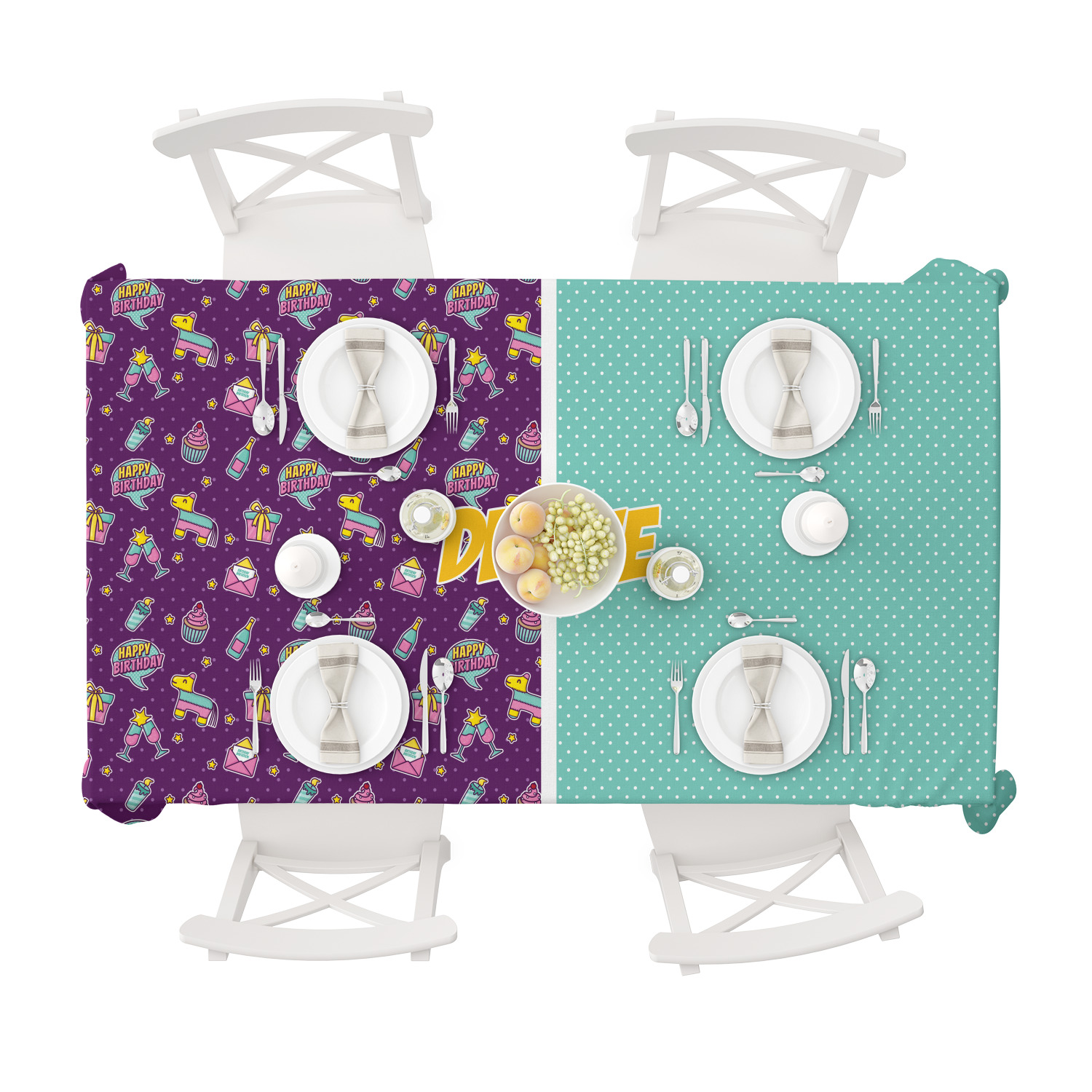 Whether you want to create a formal or informal dining room ambiance our personalized tablecloths will do just the trick!! Pull them out for the holidays, dinner parties, or use them everyday. We have a plethora of designs that cater to kids, teens, and adults; all tastes can be satisfied!!