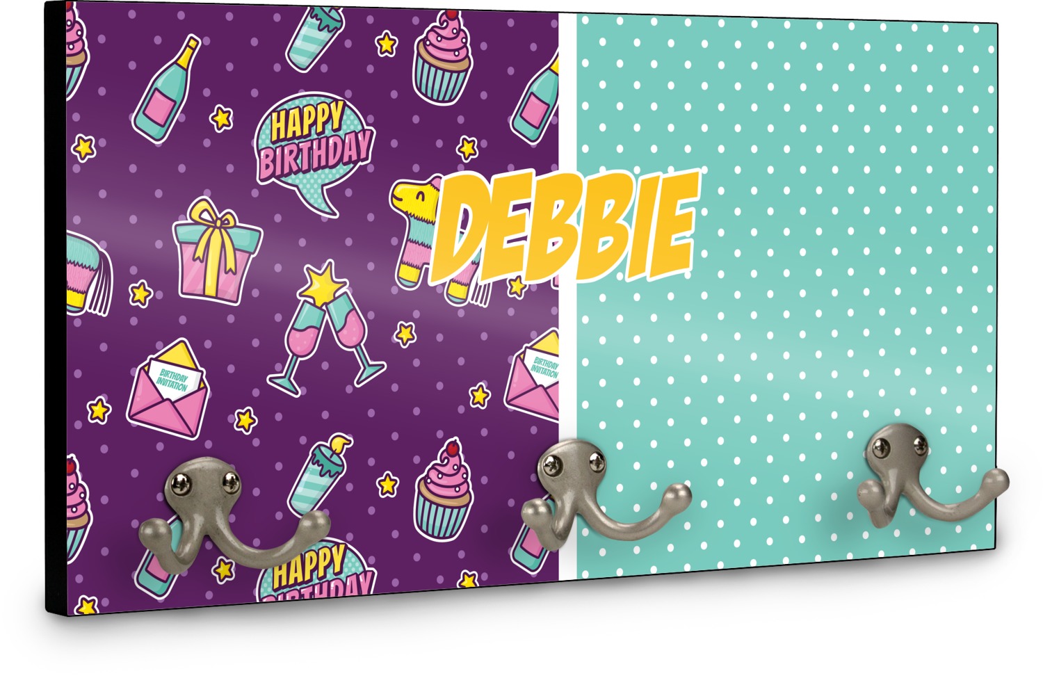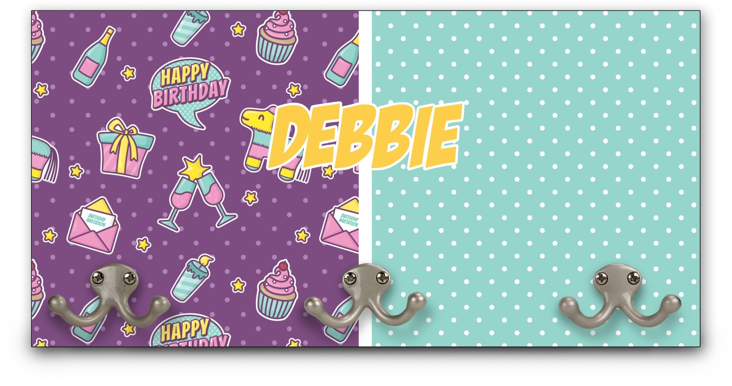 This coat rack is the perfect way to add some personality to your wall or entryway. The board is made of a strong maple that is approximately 16" x 8". The three 2-prong hooks are a sturdy metal that have three screws attaching them to the board. Your design is printed right onto the front of the board while the back and sides are a simple black.