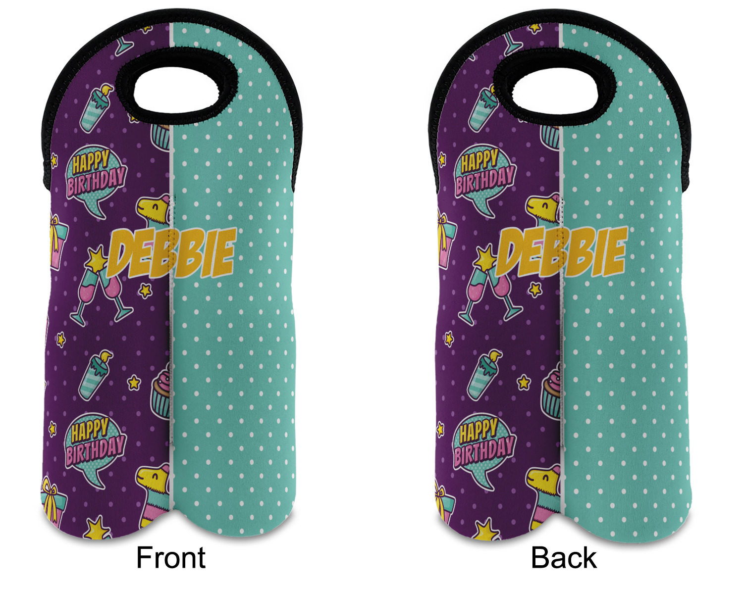 These tote bags are insulated to keep the bottles cold and have a stitched separation down the middle and double handles to keep the two bottles safe and secure during travels.