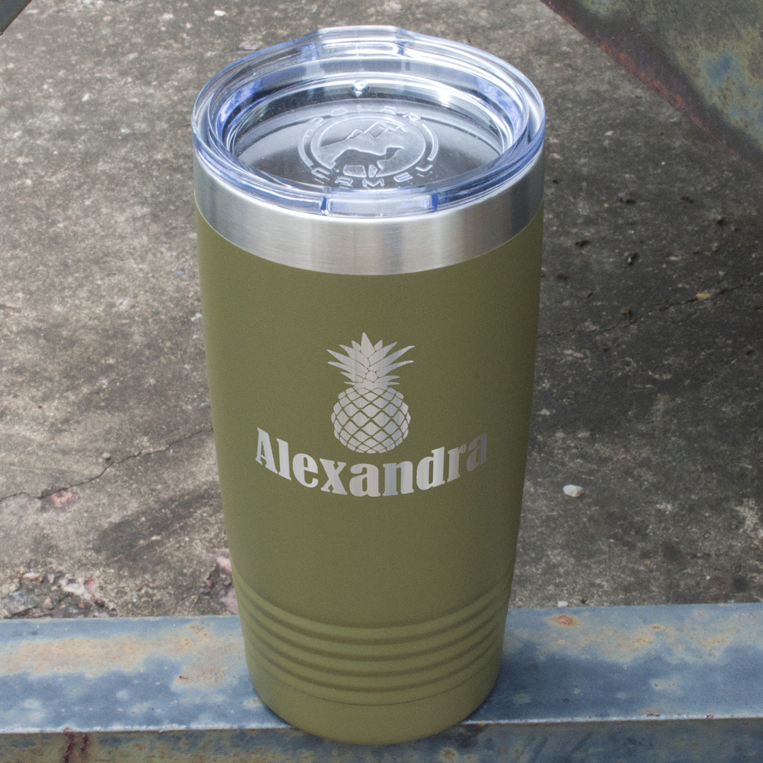 Available in 8 unique colors, these cups are crafted from 18/8 stainless steel and powder coated for their durable finish. With the 8 colors being Black, Pink, Red, Teal, White, Grey, Royal Blue, and Olive Green, you are sure to find a cup to fit your personality. You can chose to engrave on the front or the front and back of the cup. Use our design studio to design your own cup and we laser engrave it for you.