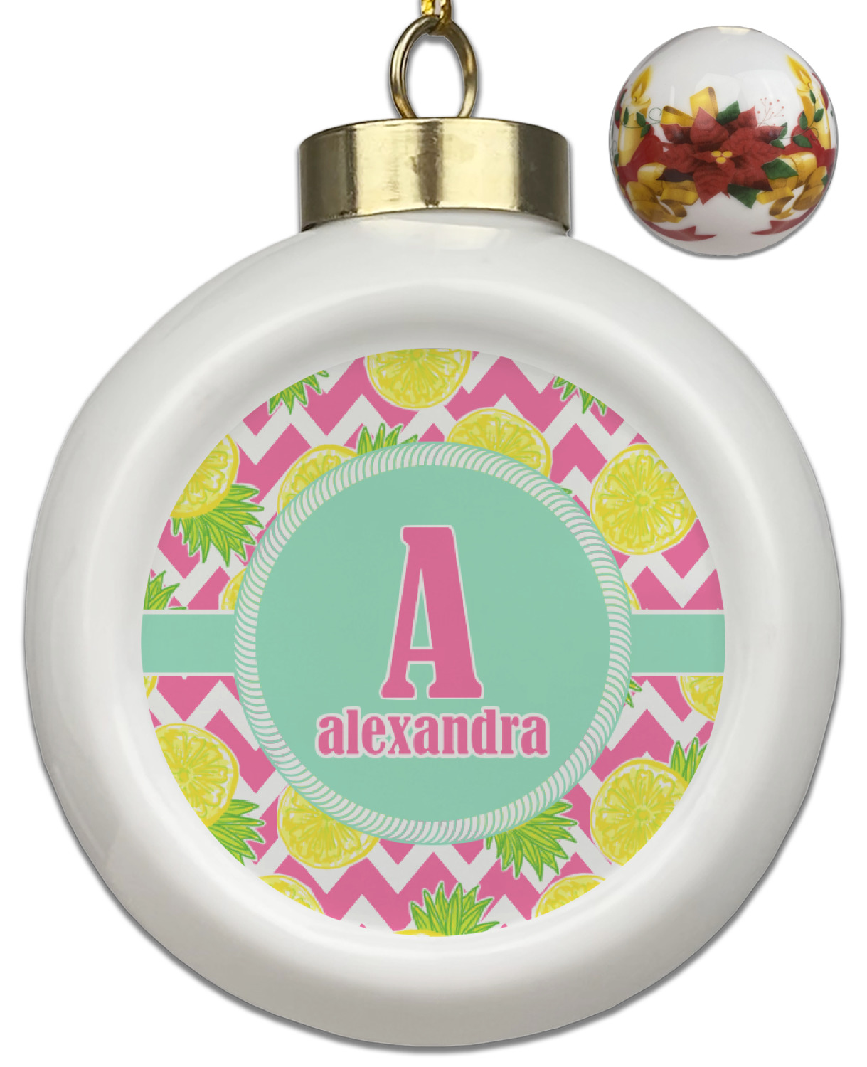 Our Christmas ornaments are a unique ceramic ball shape with a twist as it has a flat face to display your custom design! Select from one of our two design types - Christmas Tree or Poinsettia Garland - to adorn the curved back of your personal design. Each ornament measures 3H x 2.5W x 2D accompanied with a gold string accent for finishing touches to hang on your beautiful Christmas tree!