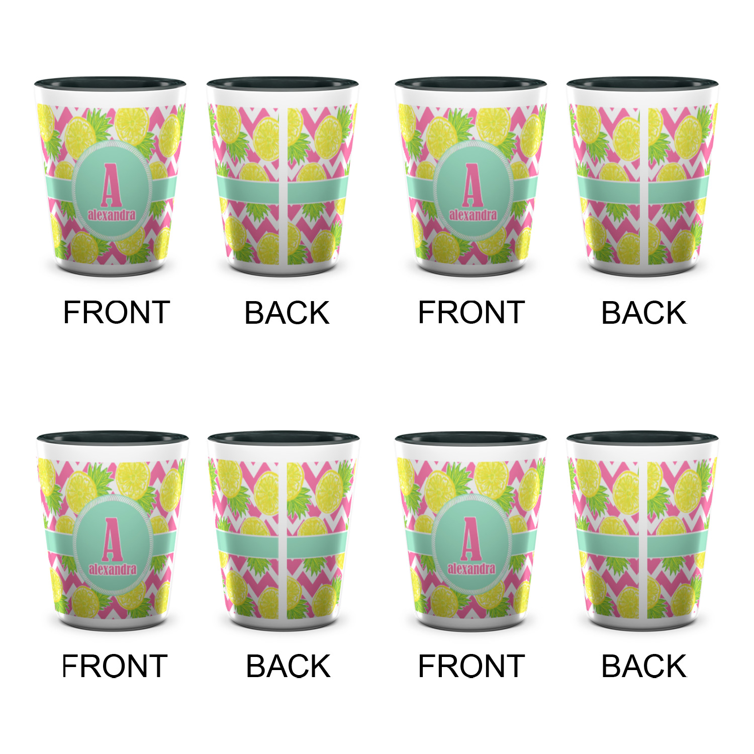Made from ceramic these shot glasses are printed in full color with the design of your choice. These are a standard 1.5oz size and stand 2.25" tall. Available in a full white ceramic or a two-tone with a black color inside the shot glass. Buy a single or a set of 4, all of which can be designed separately to get you just what you want and need.