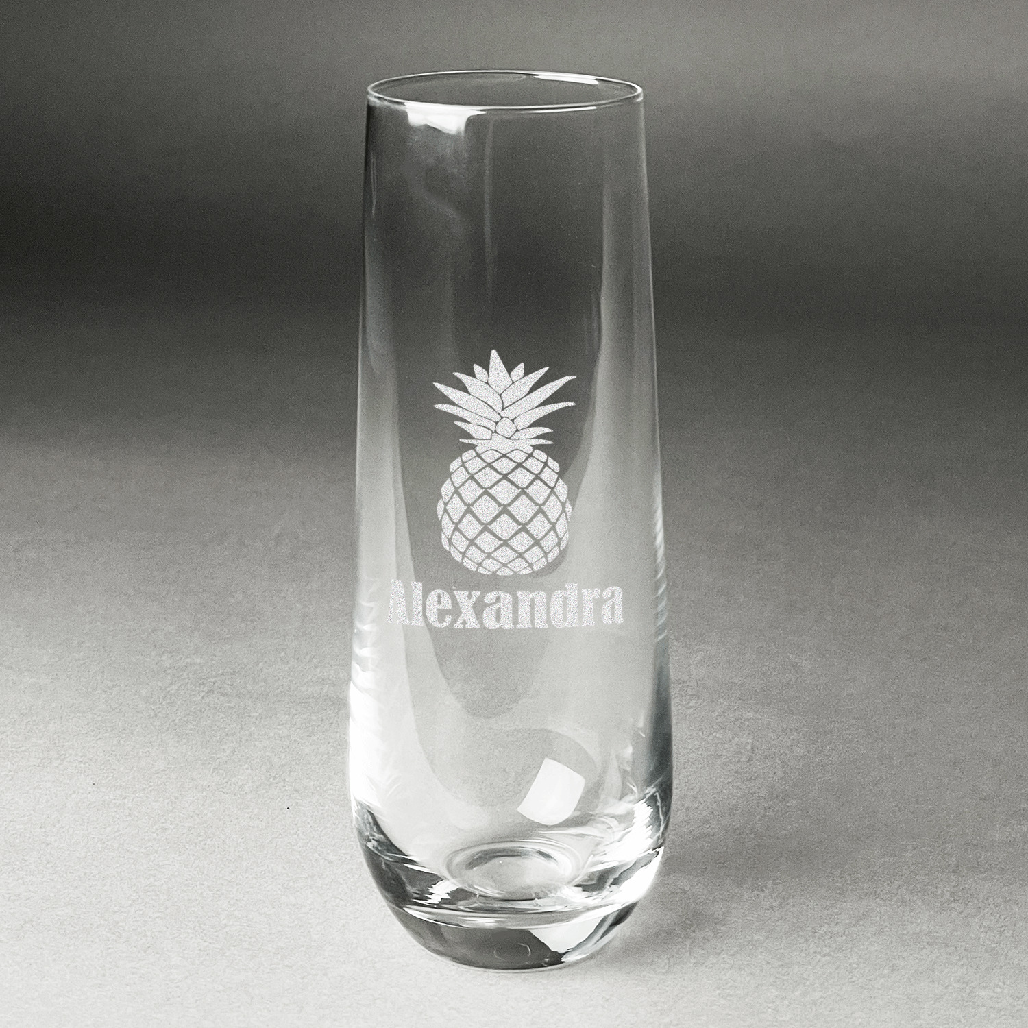 Design your custom stemless champagne flutes and we will then laser engrave your unique design on them for you. Whether they are a special gift for a bride and groom, for your New Years Eve party, or a bachelorette party you are sure to be able to add a custom personalized touch to make them perfect for the occasion.