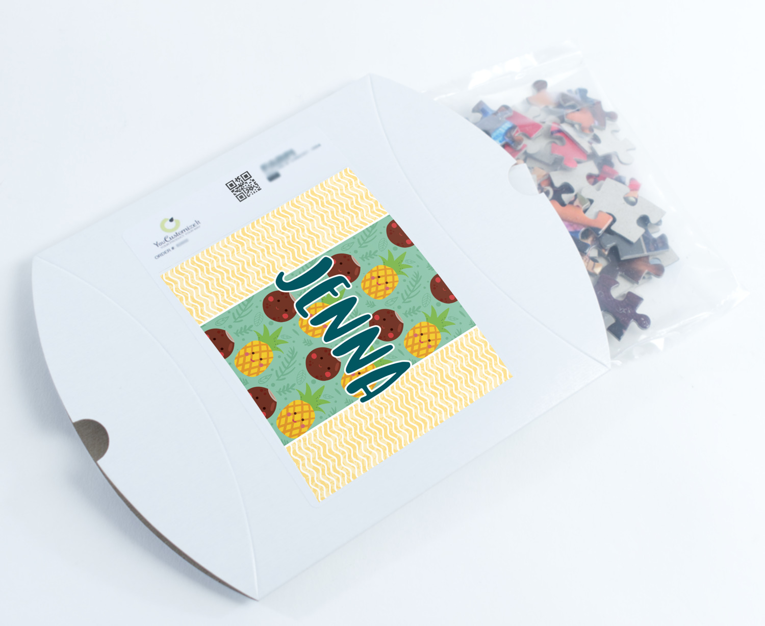 Depending on the look you are trying to achieve, you can add; a thematic pattern or background, with a photo in a frame and text or personalization to your puzzle. Basically if you can imagine it, you can design it!