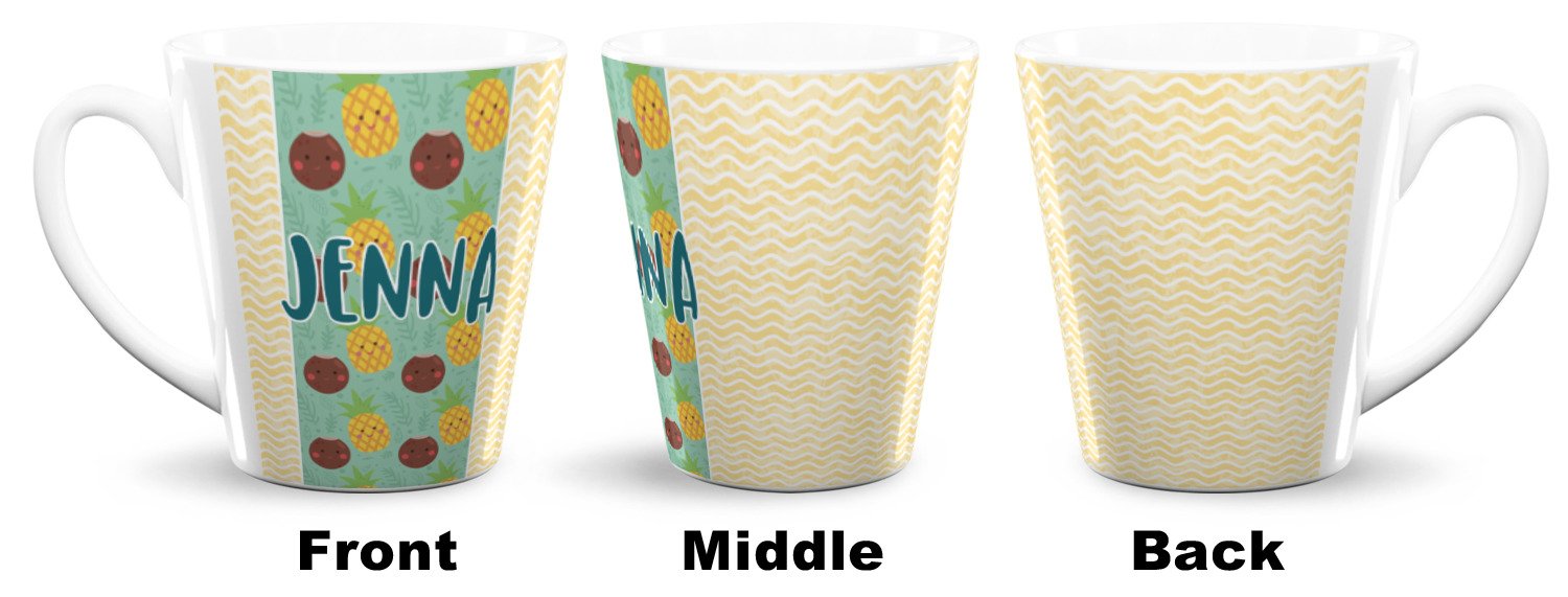 Choose from one of our two ceramic latte mug sizes. Our 12oz latte cups are great for a few shots of espresso or some tea before bed. The 16oz mug is a tall latte mug perfect to hold iced coffee or give you extra room to sip your favorite drink. We print your design with a glossy finish wrapping around the outside of the ceramic mug, so make sure your design is displayed to your ideal vision!