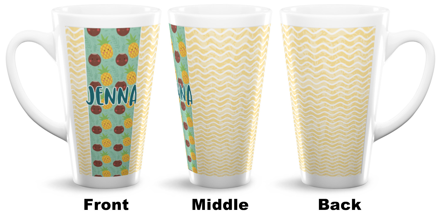 Choose from one of our two ceramic latte mug sizes. Our 12oz latte cups are great for a few shots of espresso or some tea before bed. The 16oz mug is a tall latte mug perfect to hold iced coffee or give you extra room to sip your favorite drink. We print your design with a glossy finish wrapping around the outside of the ceramic mug, so make sure your design is displayed to your ideal vision!