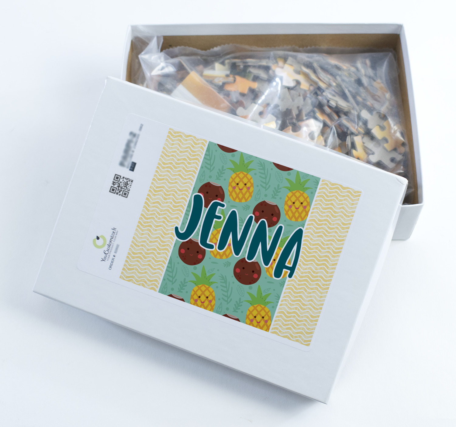 You can also upload your logo or art that you or your kids drew. To create more challenging jigsaw puzzles, you can create a pattern from with your logo or artwork. You can also add other elements such as text or personalization.