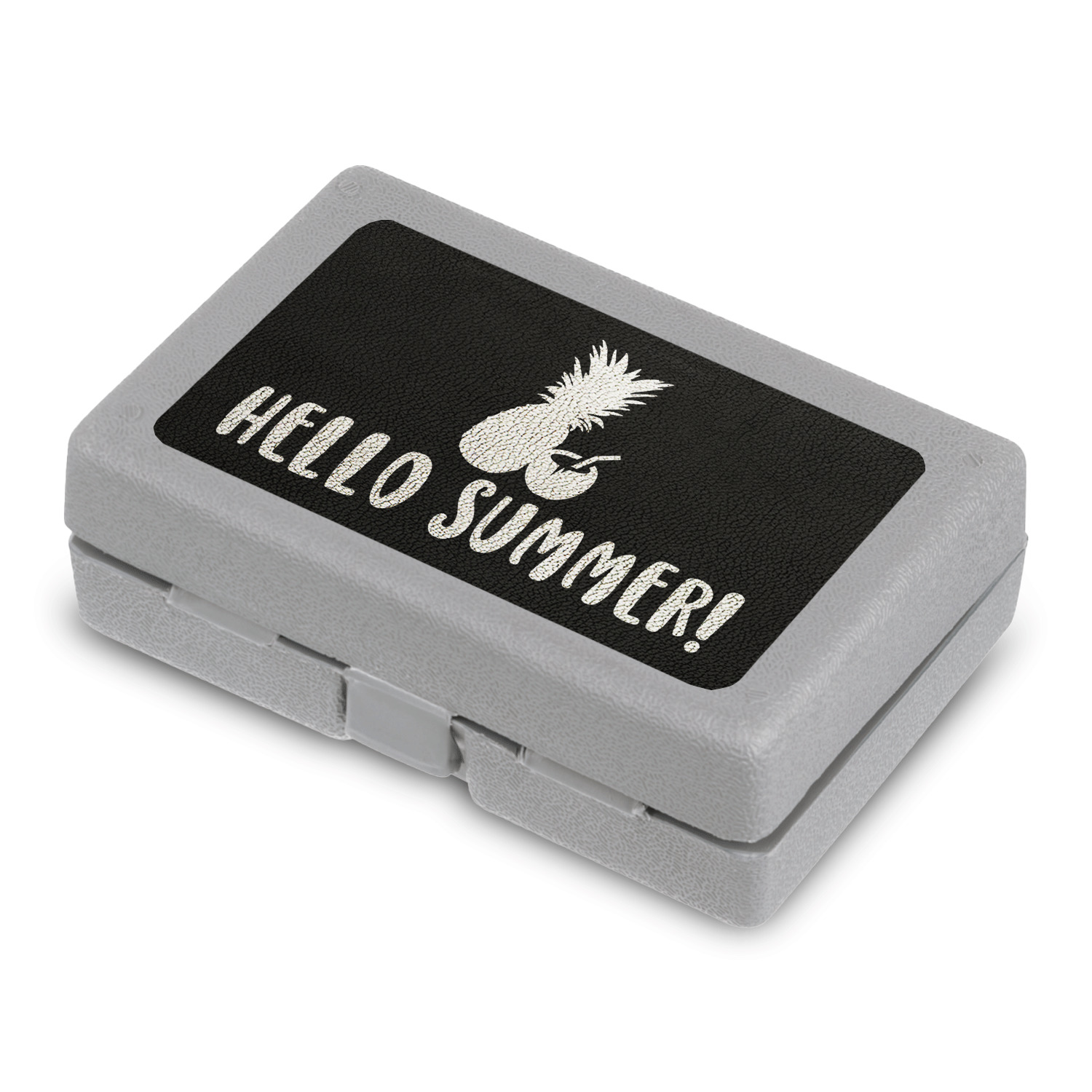 In a tri-fold hard shell case which measures 6" wide, 4" deep and 2" tall, this kit is the perfect size to keep in a desk, garage drawer, or anywhere else in the house. The snap closure keeps it securely closed to ensure the tools do not fall out. With the black faux leather on the outside engraved with your choice of personalization it will be easier to ensure it stays yours by being customized just for you!