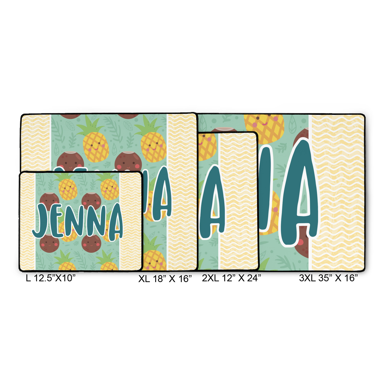 This design is filled with happy coconuts and pineapples to brighten your day. A nice teal color is used behind them, while a yellow chevron is used as the secondary pattern.