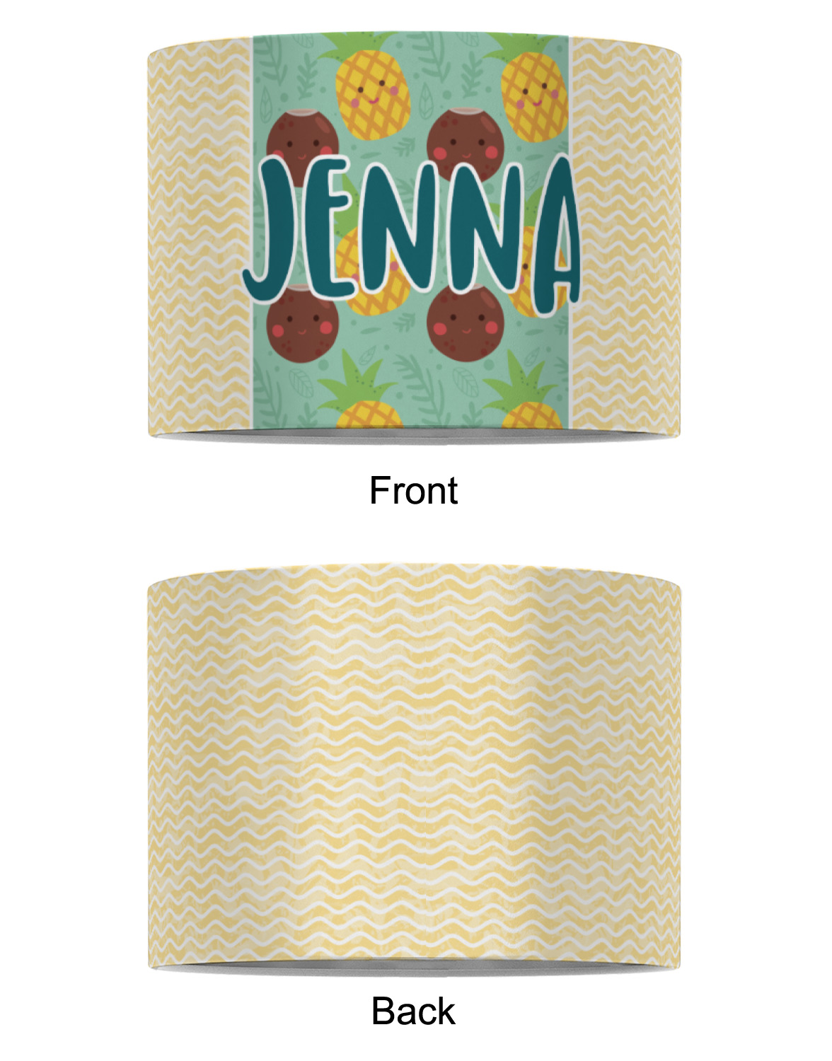 This design is filled with happy coconuts and pineapples to brighten your day. A nice teal color is used behind them, while a yellow chevron is used as the secondary pattern.