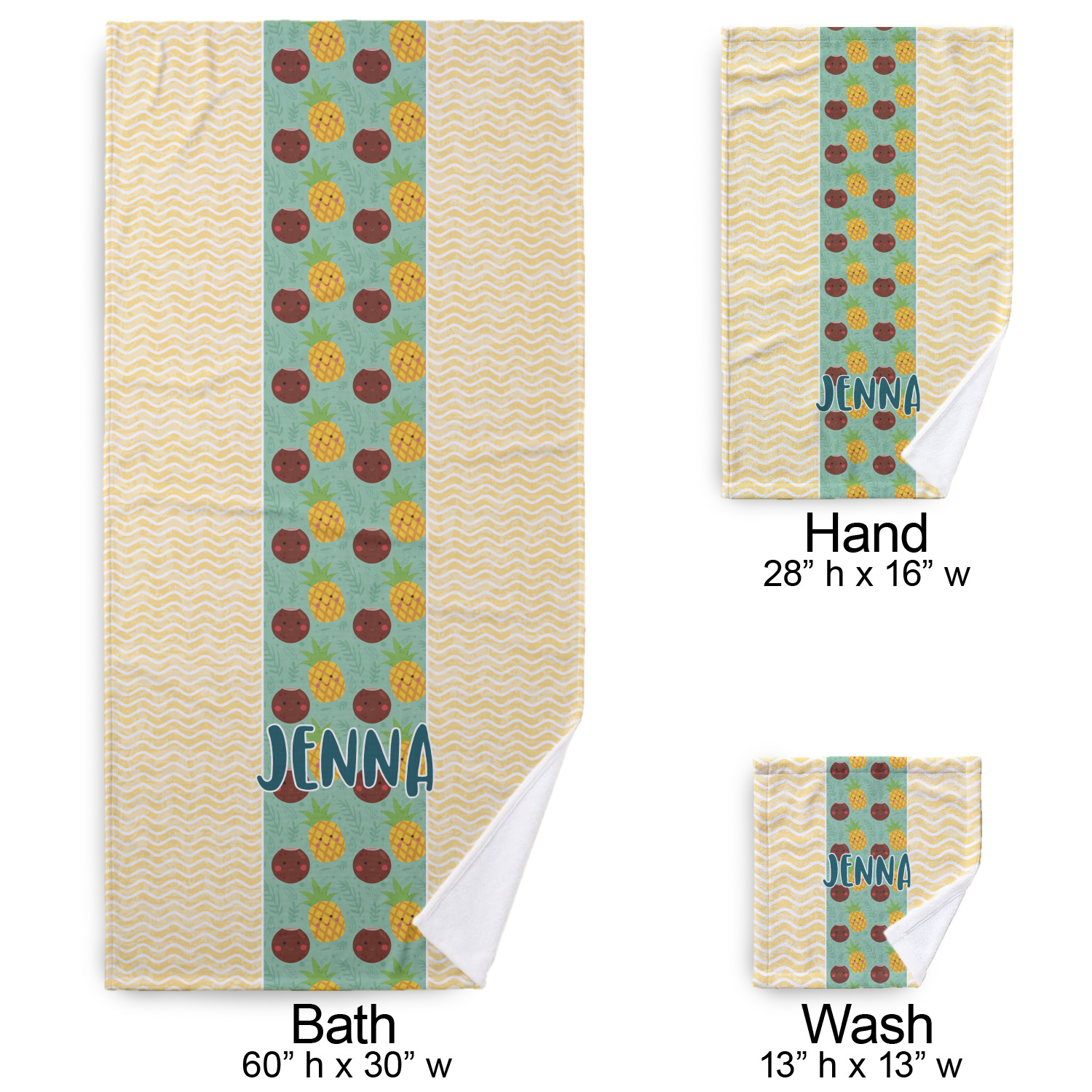 | Product Dimensions | Bath Towel (Approx. 30" x 60") Hand Towel (Approx. 16" x 28") Wash Cloth (Approx. 13" x 13") |