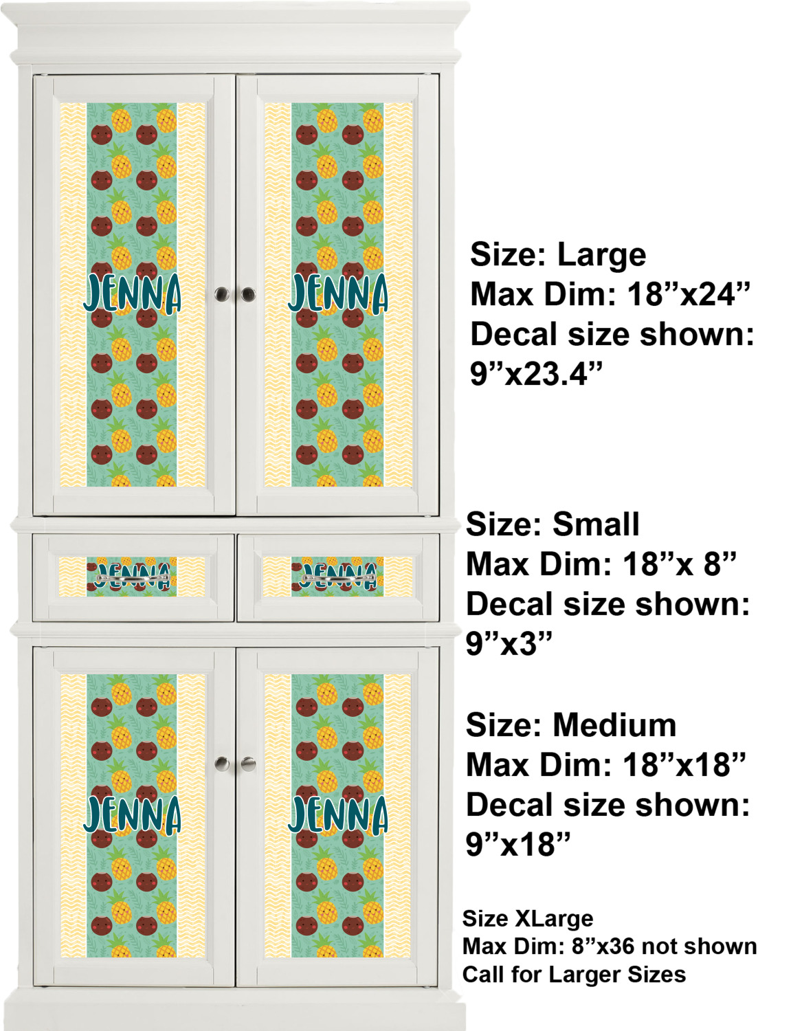 We print your customized design in full color, onto a high quality vinyl, covered with a glossy finish. For attachment to the cabinet, each cabinet sticker is accompanied by an easily applied, adhesive backing. The adhesive backing also guarantees a smooth removal or repositioning if desired. We sell these decals in four different sizes, but each size can be downsized appropriately to fit the needs of your kitchen. We offer a small, which is 18 by 8 inches, a medium, which is 18 by 18 inches, a large, at 24 by 18 inches, and an extra large, at 36 by 18 inches. We advise that you measure your cabinets first so you can make a properly informed purchase. For those who are interested in purchasing decals larger than 18 by 36 inches, please contact our team.