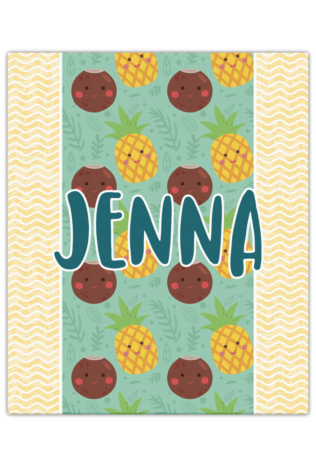 This design is filled with happy coconuts and pineapples to brighten your day. A nice teal color is used behind them, while a yellow chevron is used as the secondary pattern.