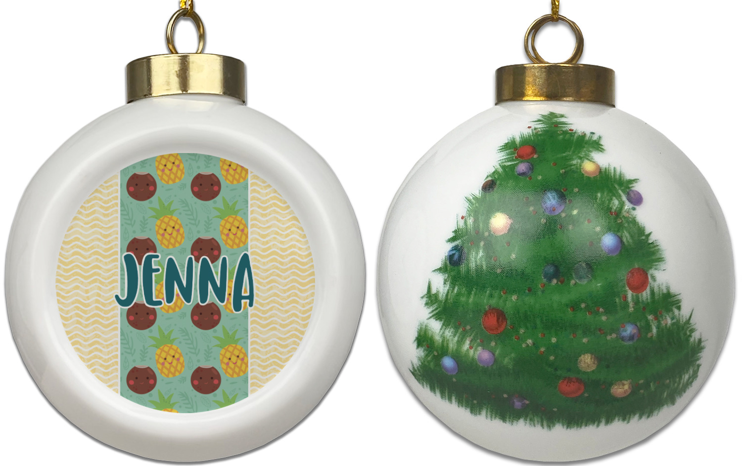 Our Christmas ornaments are a unique ceramic ball shape with a twist as it has a flat face to display your custom design! Select from one of our two design types - Christmas Tree or Poinsettia Garland - to adorn the curved back of your personal design. Each ornament measures 3H x 2.5W x 2D accompanied with a gold string accent for finishing touches to hang on your beautiful Christmas tree!