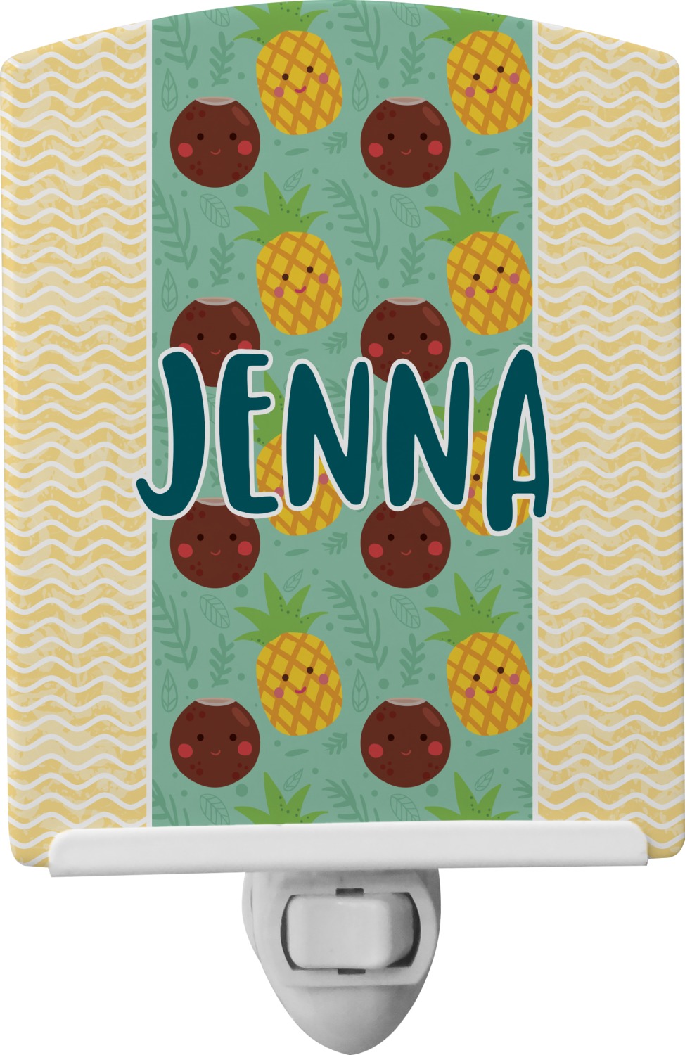 This baby night light is made of durable, ceramic plate that displays your customized design beneath a glossy finish. When this light is turned on, your personalization glows in the dark and offers a bit of light to any room or hallway. The plate also rotates easily. This plug-in night light has a white base with a convenient on and off switch. Additionally, the rotating plug allows you to plug them into US sockets horizontally or vertically. If your child outgrows the design years into the future, you can easily unscrew the plate and use it as a plain nightlight. With your purchase of this outlet night light, we include a 7-watt bulb.