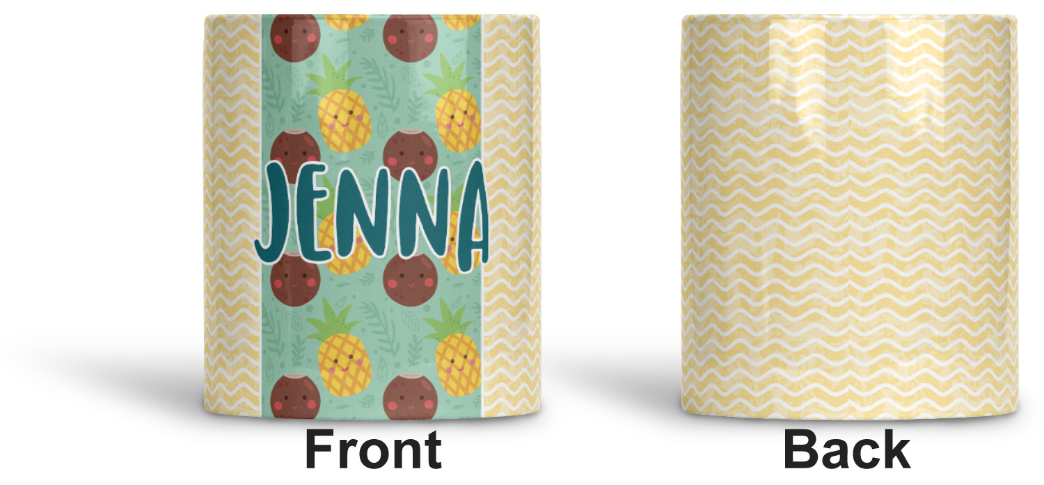 Made from white ceramic, this pen holder displays your personalized design across its surface. This pen organizer measures at 3.75" high by 3.25 inches diameter and has ample space for several pens, pencils, scissors, markers, and more! This is also a multipurpose accessory; you can use it to store makeup brushes, other utensils, and more!