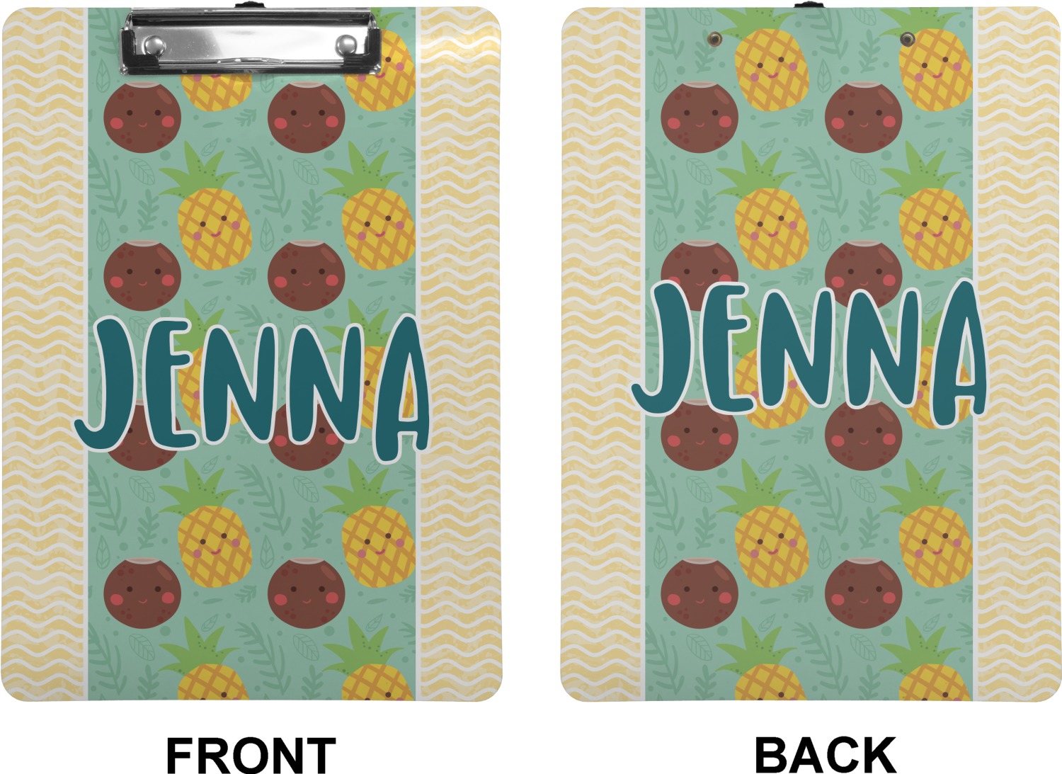 These custom clipboards are made from a strong hardboard and are coated with a glossy finish that accentuates the colors of your design. Alongside a retractable hook at its top, these decorative clipboards also feature sturdy clips to secure several sheets of paper. We sell these clipboards in two separate sizes. Our letter size measures at 12.5" L x 9" W, while our legal clipboard is approximately 15.5" L x 9" W. On both models, your personalization is printed on both sides of this clipboard and can be customized individually.