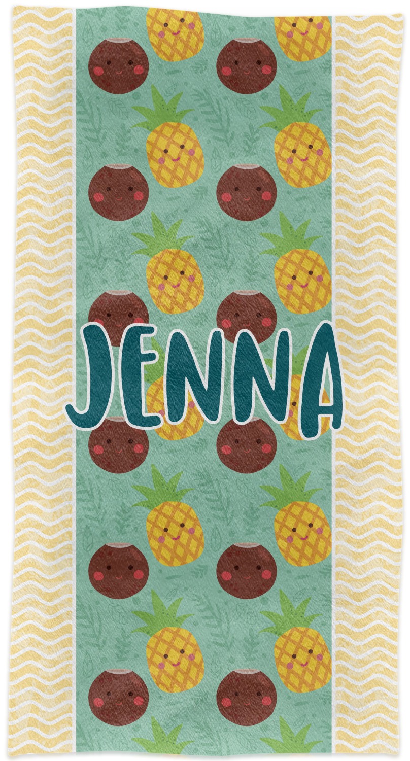 This design is filled with happy coconuts and pineapples to brighten your day. A nice teal color is used behind them, while a yellow chevron is used as the secondary pattern.