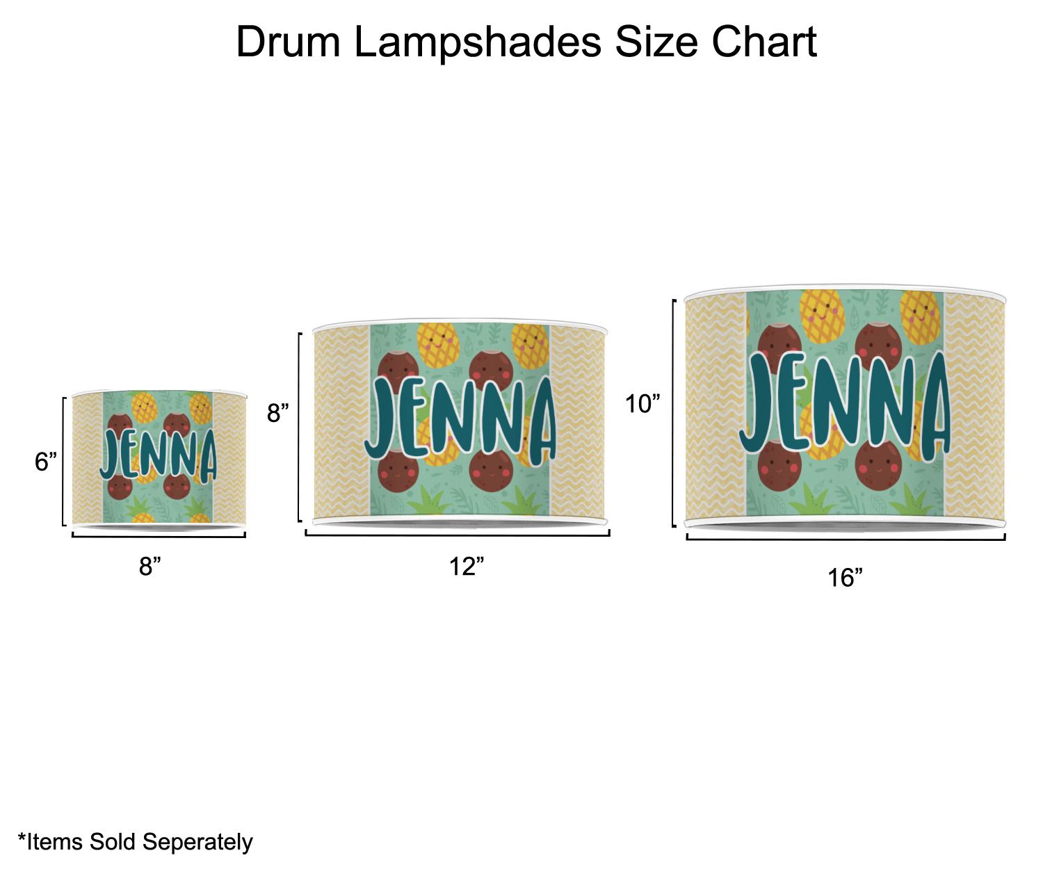 Our customized lamp shades also come in 3 different sizes: 8", 12" and 16", measuring at 8" in diameter by 6" tall, 12" in diameter by 8" tall, and 16" in diameter by 10" tall, respectively.