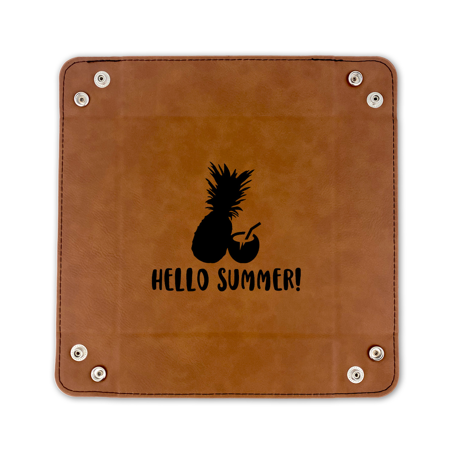 The leatherette wraps the hard board base and sides with flexible hinges to fold the sides up. The corners are secured using silver snaps. The 6in x 6 in tray measures approximately 9.5in x 9.5in when laid flat. The 9in x 9in tray measures approximately 13in x 13in when laid flat.