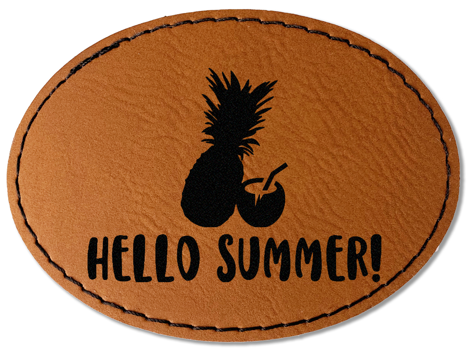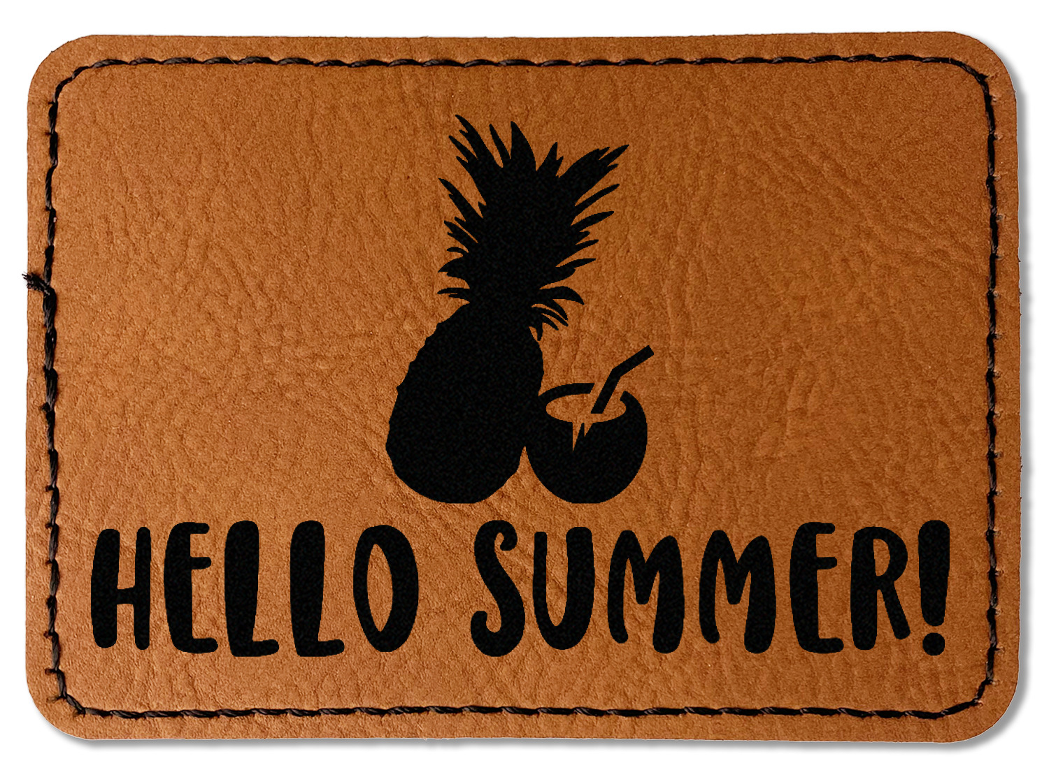 Our leather patches come in 4 different shapes - Square (3" x 3"), Round (3" x 3"), Oval (3.5" x 2.5"), Rectangle (3.5" x 2.5") and a beautiful rich brown rawhide or cognac color.