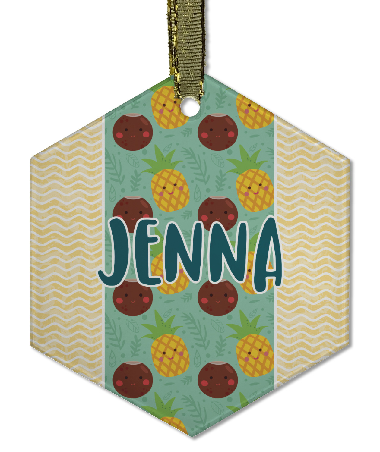 Each of our flat glass ornaments come with a gold string to hang on your Christmas tree with style! We offer two different shapes - flat, round ball or a hexagon. Both glass ornaments have a frosted coating on one side where we print your design while the other side is a clear gloss to give your personalized ornament a sheen finish. Our flat round glass ornament is approximately 3.5" x 3.5" while the flat hexagon ornaments are approximately 3.5" x 3".