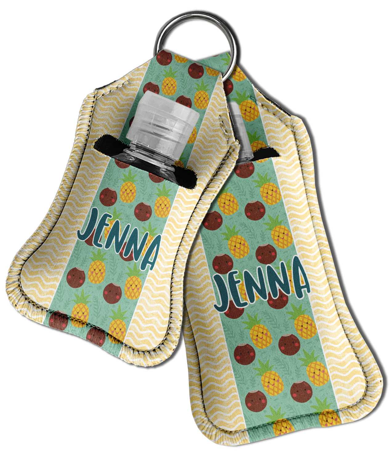 Each hand sanitizer holder comes with its own empty travel-sized, refillable hand sanitizer sure to fit snug in your customized sanitizer case! Our hand sanitizer cases are a durable, yet soft neoprene material sure to last any daily activities or travel agenda. Customize and personalize a hand sanitizer bottle holder with one of our two sizes - small (4.25" x 2.25") or large (5.5" x 2.5"). Each travel sanitizer holder comes with a keyring for attachment on bags, keys, or more!
