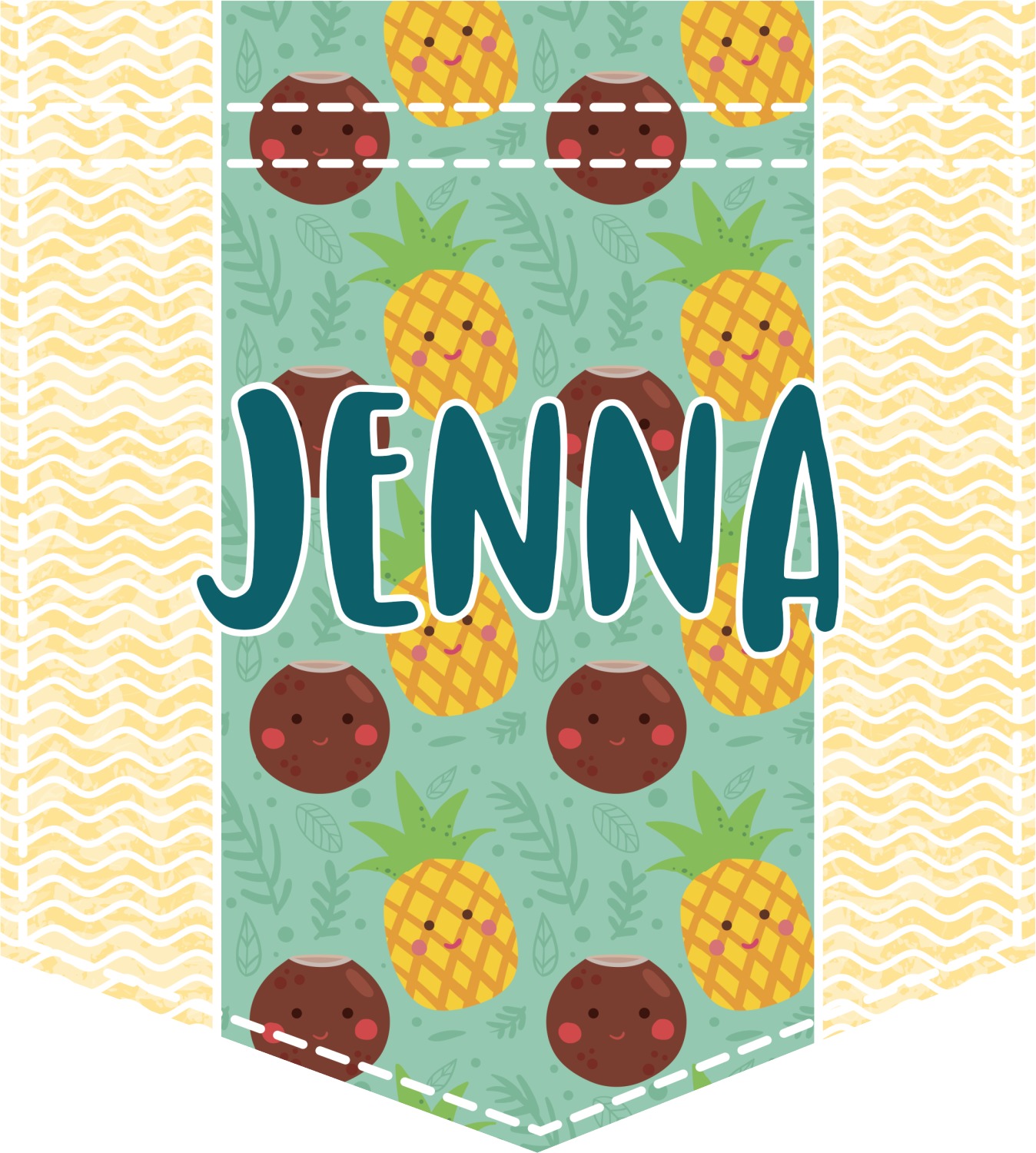 This design is filled with happy coconuts and pineapples to brighten your day. A nice teal color is used behind them, while a yellow chevron is used as the secondary pattern.