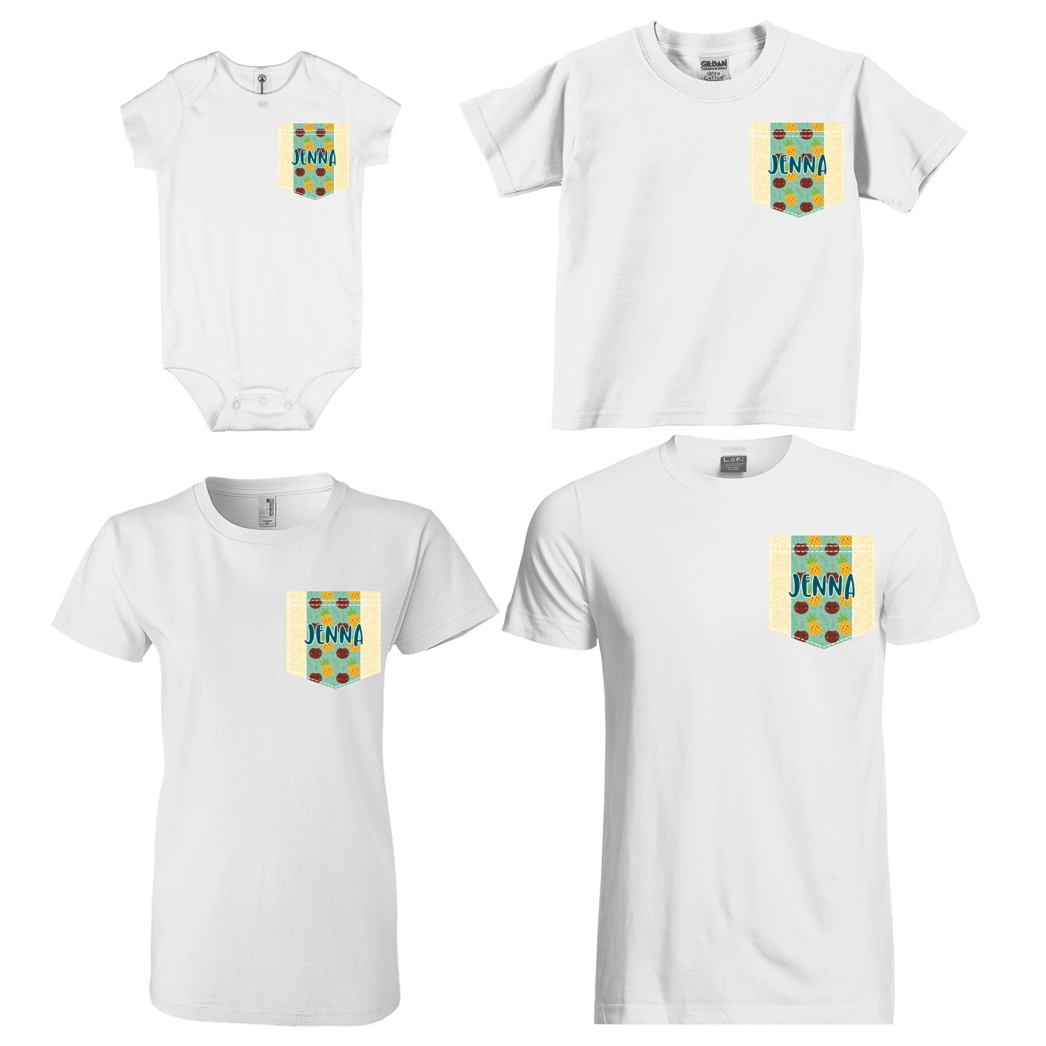 The faux pockets are available in 4 different sizes - for baby, kids, youth/women & men; the whole family can have the same pocket design, but sized just for them! The pockets are printed using our direct-to-film technology to the exact shape & size. We have faux stitching around the pocket, with double stitching on the top of the pocket to give it the authentic pocket look!