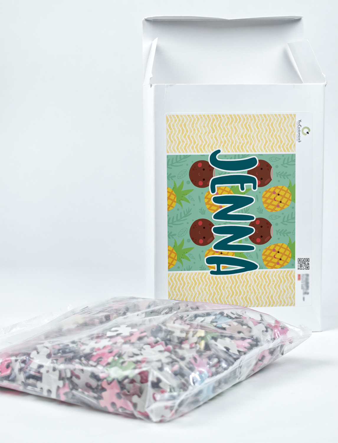 You can also upload your logo or art that you or your kids drew. To create more challenging jigsaw puzzles, you can create a pattern from with your logo or artwork. You can also add other elements such as text or personalization.