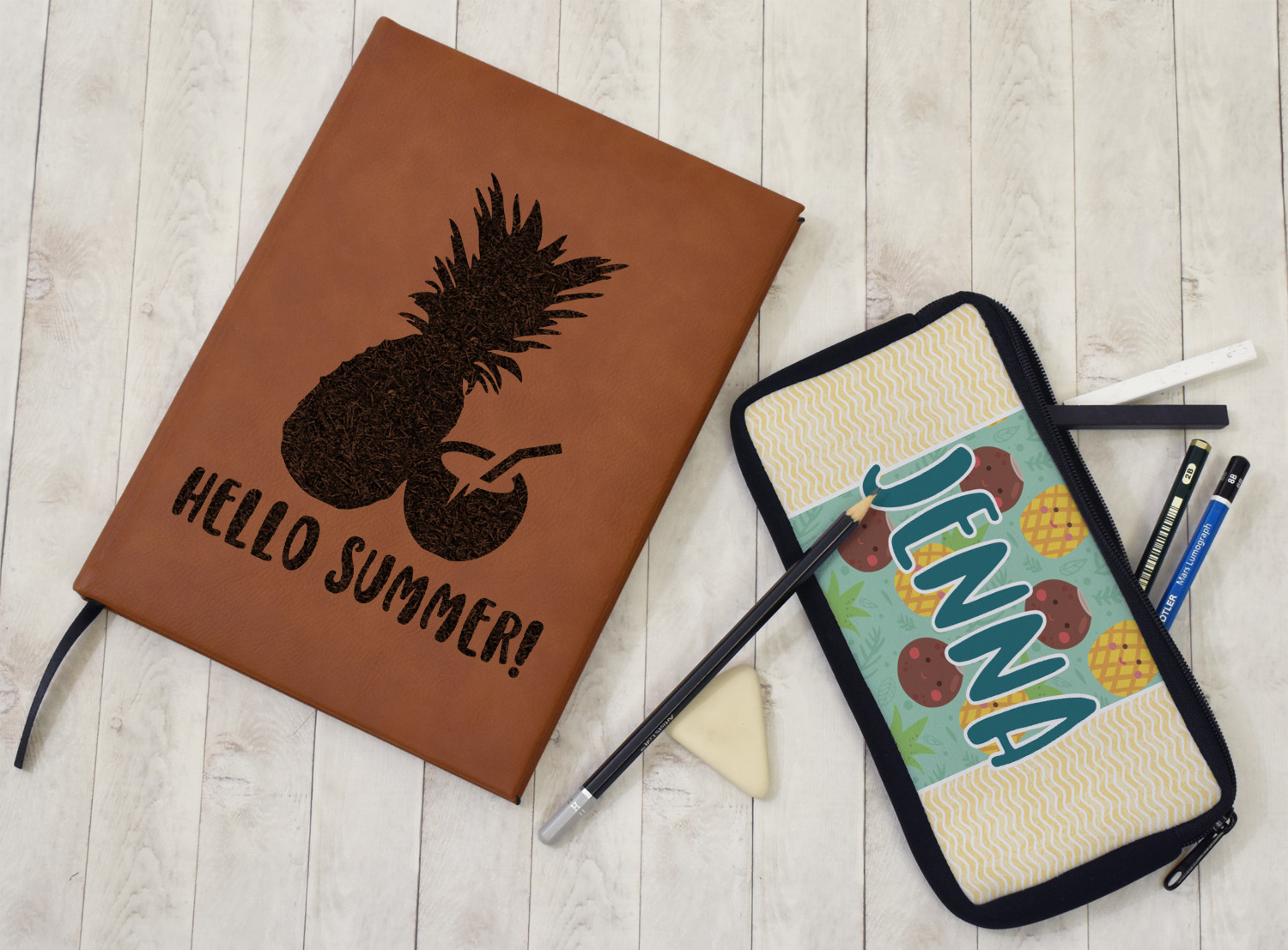 The faux leather covers are a rich cognac / rawhide color and can be customized with your design. From a simple name or monogram or a logo to a detailed mandala - the choice for customization & personalization is truly yours. Customize one of our designs or upload your own.