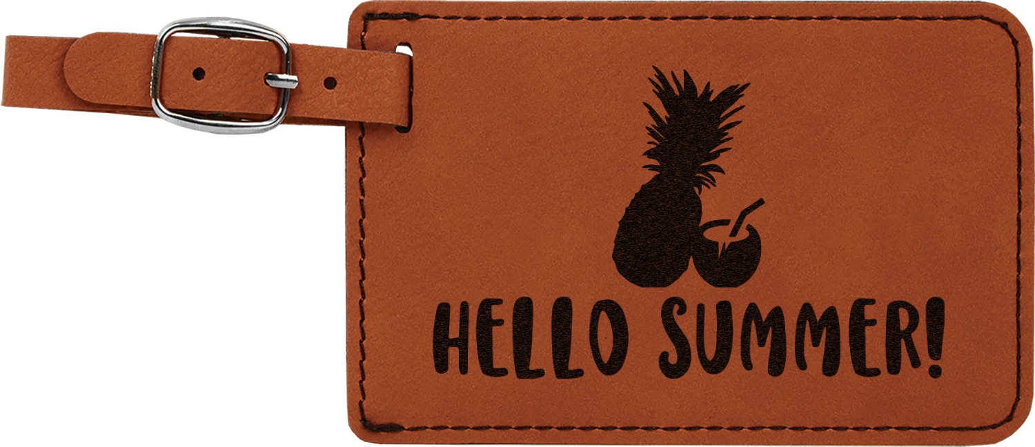 This luggage tag will surely be able to get you started in having all the right tools for traveling. It is made of a beautiful leatherette material that is a nice shade of cognac brown. The front of the tag is where your design goes. The sturdy black stitching gives your design an extra pop and gives the tag extra durability. The back of the tag has a clear vinyl window where you can slip in your address card. The tag comes with a great little buckle strap that you can easily use to clip to your suitcase. The tag itself measures at approximately 5.5"W x 4.25"H.