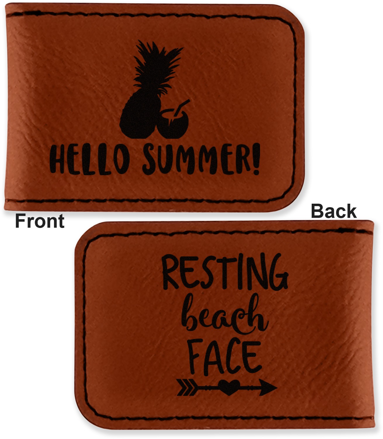 Your money clip will be laser engraved so that the design you choose will come out black. Find a fun graphic, monogram, or font to use to personalize your money clip either on just the front or the front and the back.