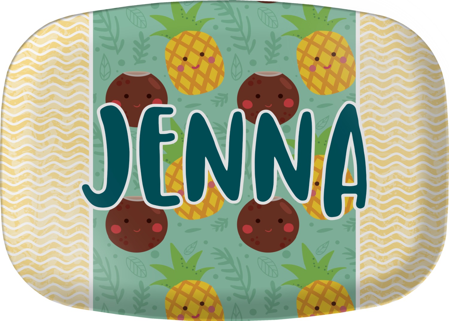 Along with our other melamine plates, these dishes are break and drop resistant. These platters measure at 14" x 10", and is spacious enough to hold your appetizers, snacks, and more! Our melamine dishes are always made with BPA, and are dishwasher safe for your convenience. Your personalization is displayed across the bottom of the platter's inside, and the exterior is a classy, white color.