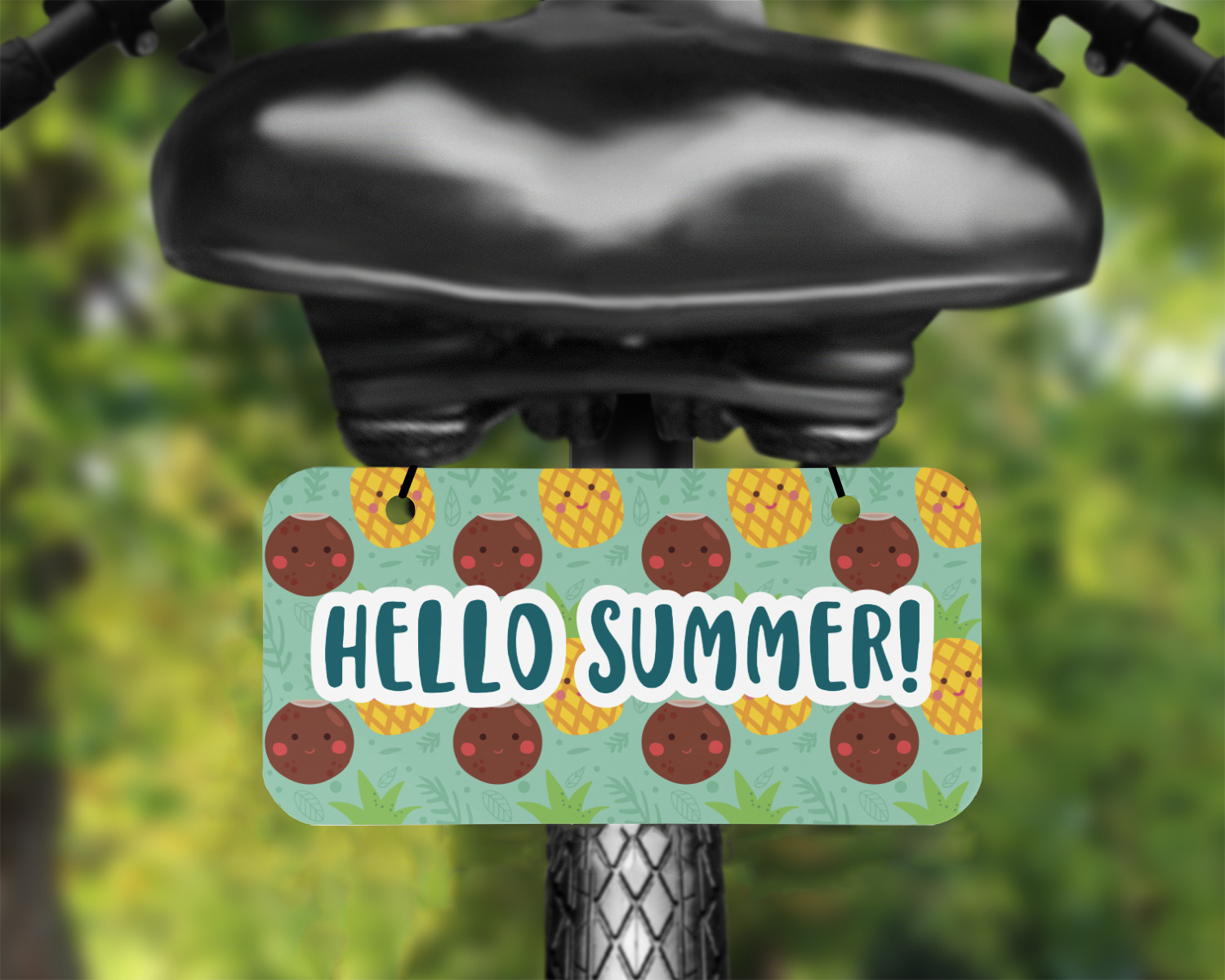 This design is filled with happy coconuts and pineapples to brighten your day. A nice teal color is used behind them, while a yellow chevron is used as the secondary pattern.