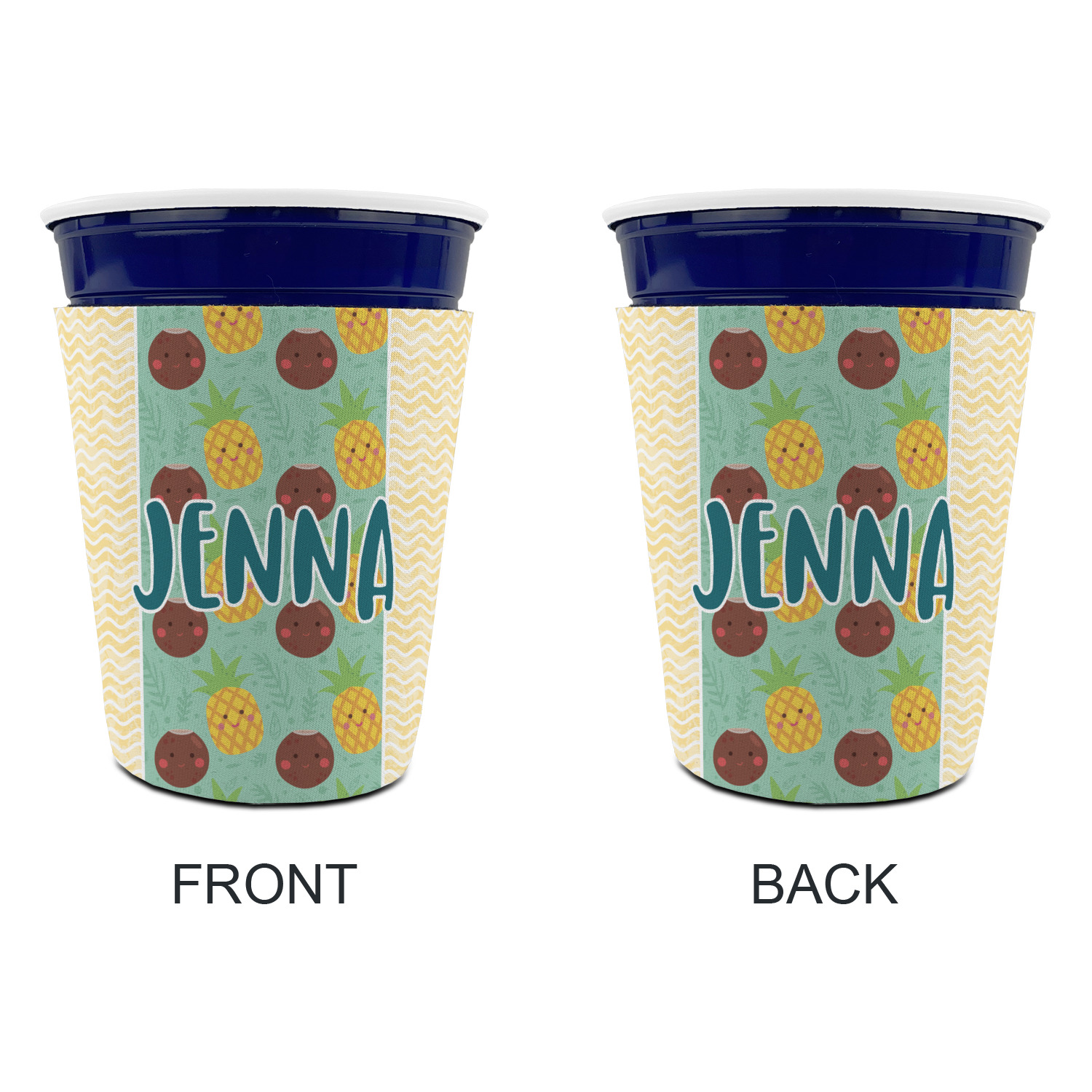 Made from neoprene with a polyester outer fabric and sewn seams, these premium quality party cup sleeves are very durable and will hold up to heavy use. They are available in 2 styles - with a bottom or just a sleeve to go around the outside of the tapered cup. The sleeve covers are about 4" tall and cover about 90% of the classic 16 oz. Solo cup.