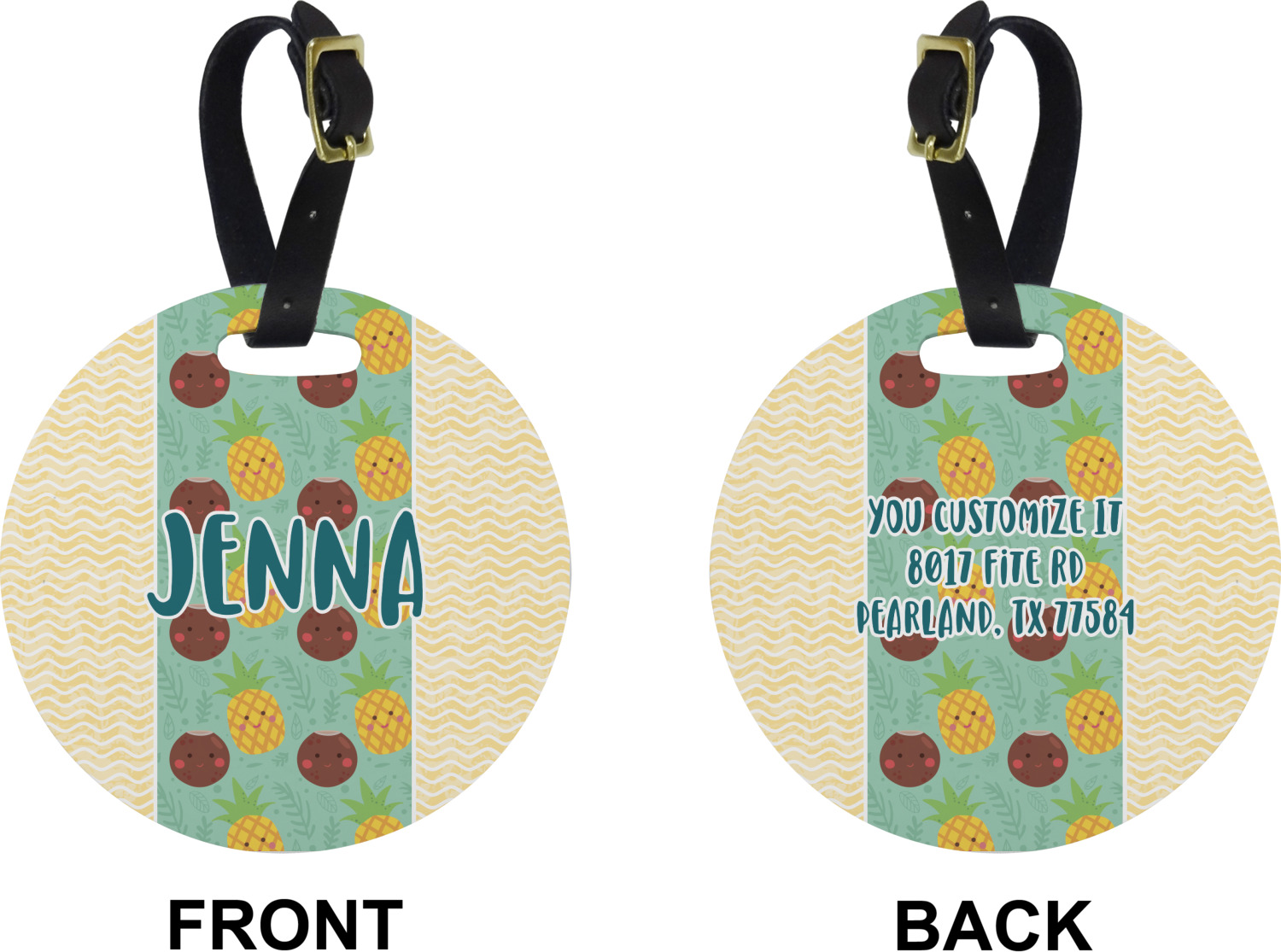 These cute luggage tags are made of a fiber-reinforced, UV-resistant plastic, making them waterproof and durable enough for both everyday use and the rugged adventures of any traveler! A leather strap with holes and a buckle is included with your purchase and can be used to attach your custom luggage tag to any suitcase, backpack, or duffel bag. You can design these travel tags as you wish; your customization will be displayed across the front, while the back will show as little or as much personal information as you want.