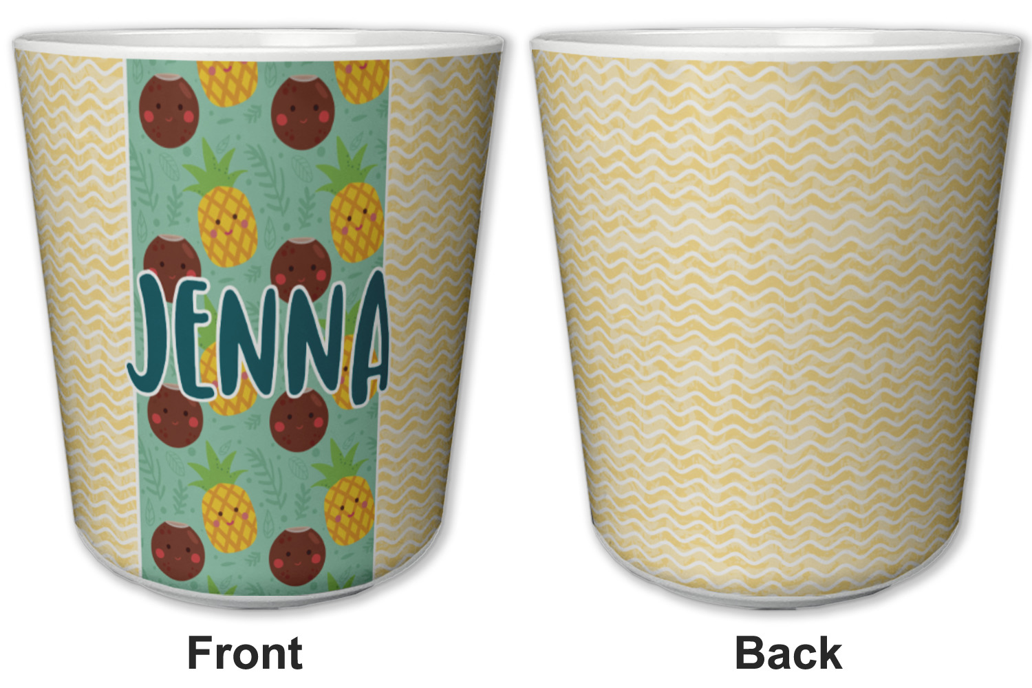 Made from a durable plastic, these tumbler cups are strong enough to withstand daily use and are perfect for young children. Each of these personalized plastic cups holds 6 ounces and measure at approximately 3" x 3" x 3.25". Place them in the bathroom as a rinsing cup, or give them to your kids during mealtimes. These 6 oz. plastic cups are BPA free, microwave and dishwasher safe, for your convenience. Your personalized design is displayed across the entire outside of this cup, while the inside is white in color to make your customization really stand out.
