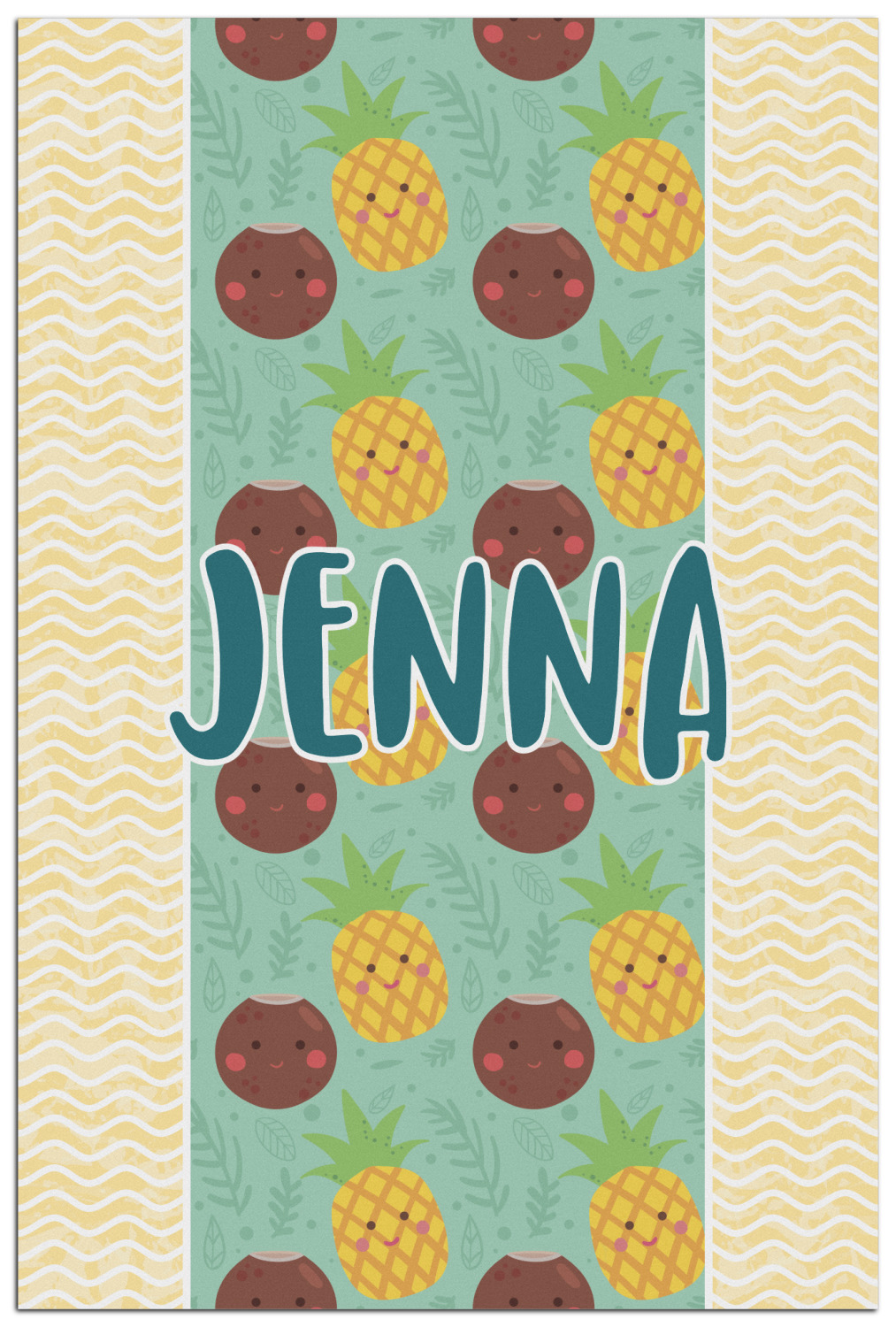 This design is filled with happy coconuts and pineapples to brighten your day. A nice teal color is used behind them, while a yellow chevron is used as the secondary pattern.
