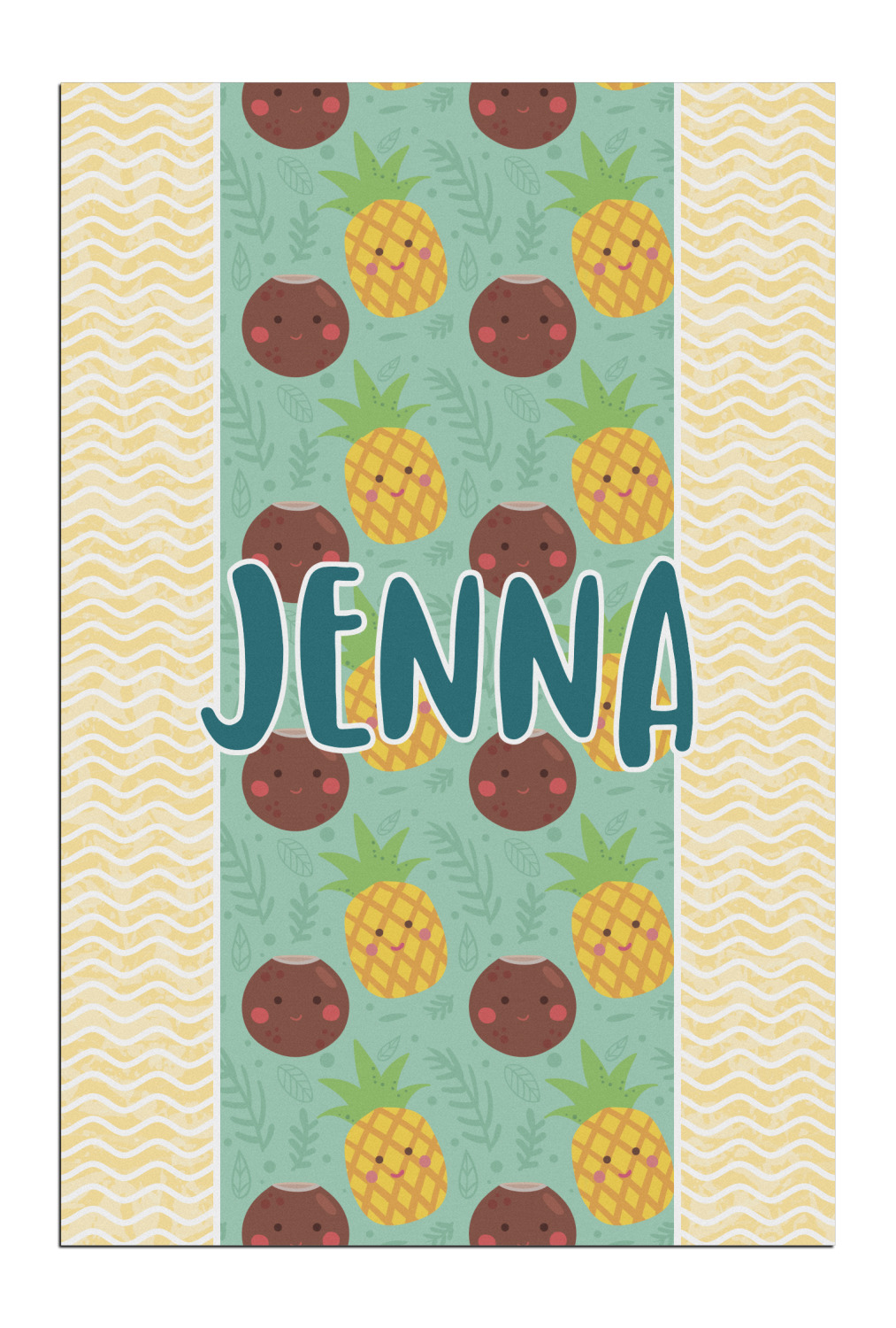 This design is filled with happy coconuts and pineapples to brighten your day. A nice teal color is used behind them, while a yellow chevron is used as the secondary pattern.