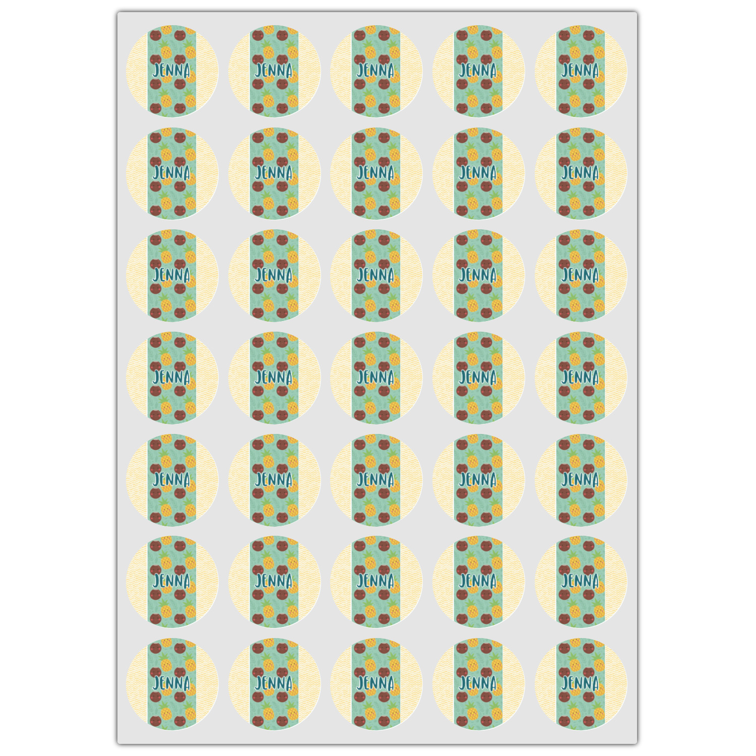 This design is filled with happy coconuts and pineapples to brighten your day. A nice teal color is used behind them, while a yellow chevron is used as the secondary pattern.