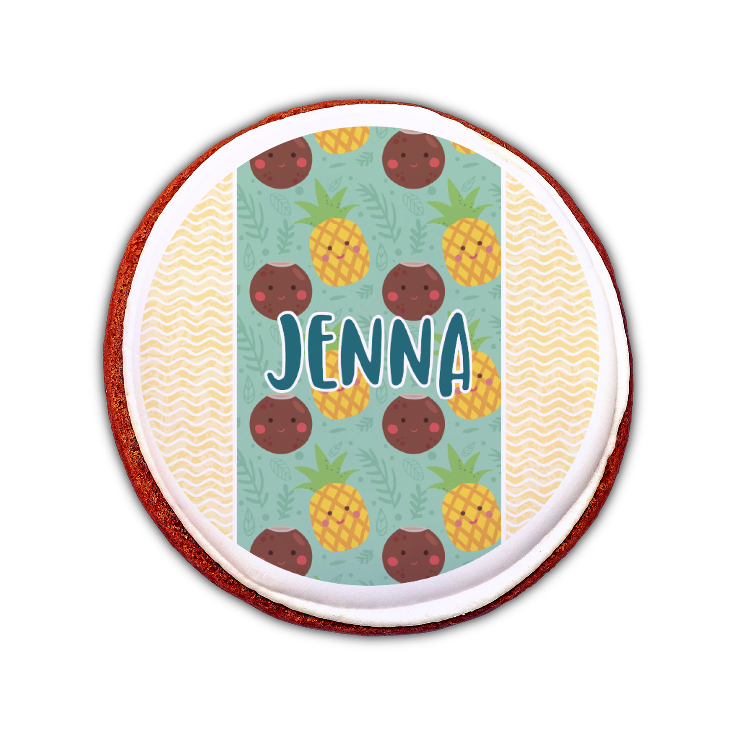 Your customized cookie toppers can be placed on top of any dessert with an icing top.The icing helps adhere the cookie topper to the dessert.