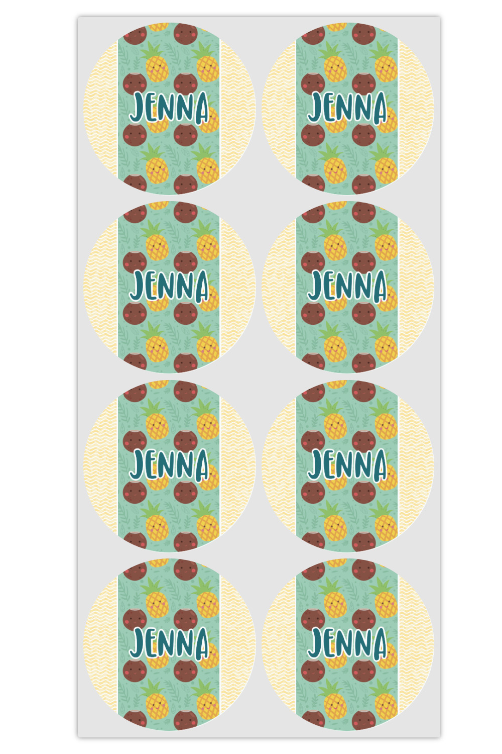 This design is filled with happy coconuts and pineapples to brighten your day. A nice teal color is used behind them, while a yellow chevron is used as the secondary pattern.