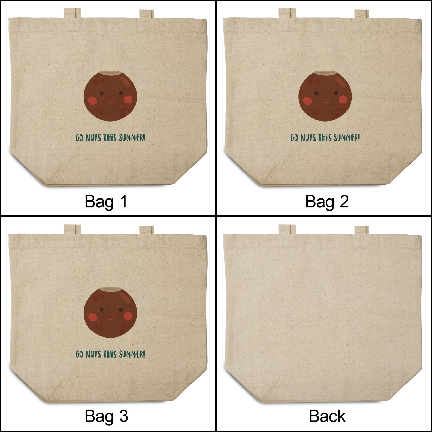 These cotton totes are washable and easy to care for, and they can be folded flat for storage. Your artwork, logo, or photo is printed in full color directly on the cotton tote in the front.