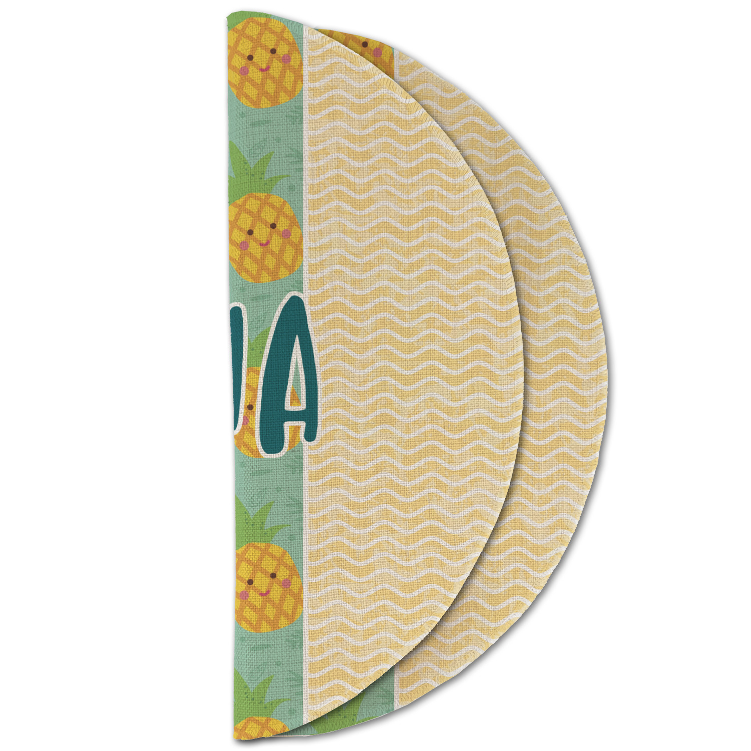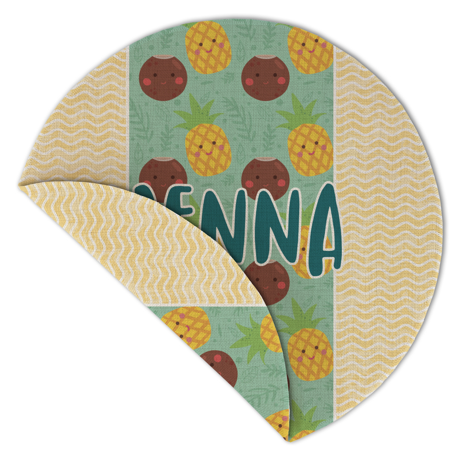 This design is filled with happy coconuts and pineapples to brighten your day. A nice teal color is used behind them, while a yellow chevron is used as the secondary pattern.