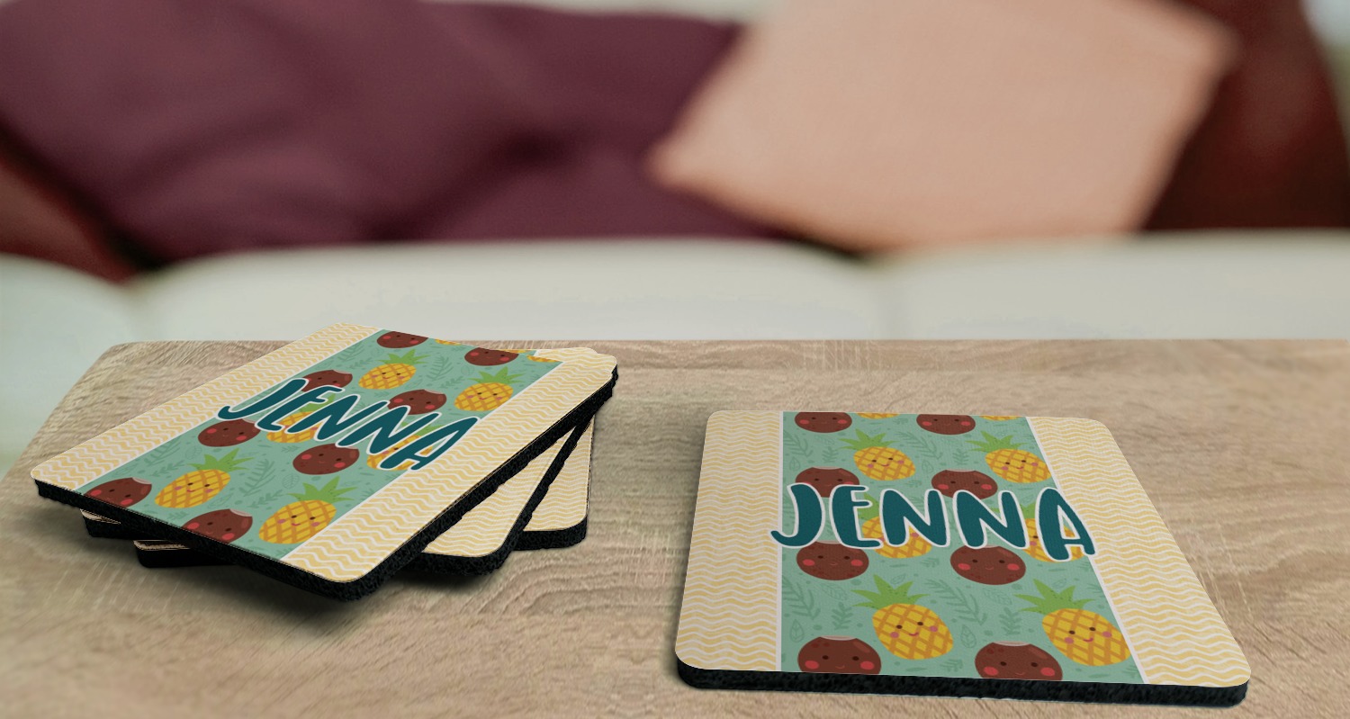 Replace your boring, run-of-the-mill coasters with a set of 4 personalized coasters! When personalized, these coasters will protect your beloved surfaces while adding to your home's decor! Thanks to your coasters bright colors and unique design, your guests will be eager to use them!