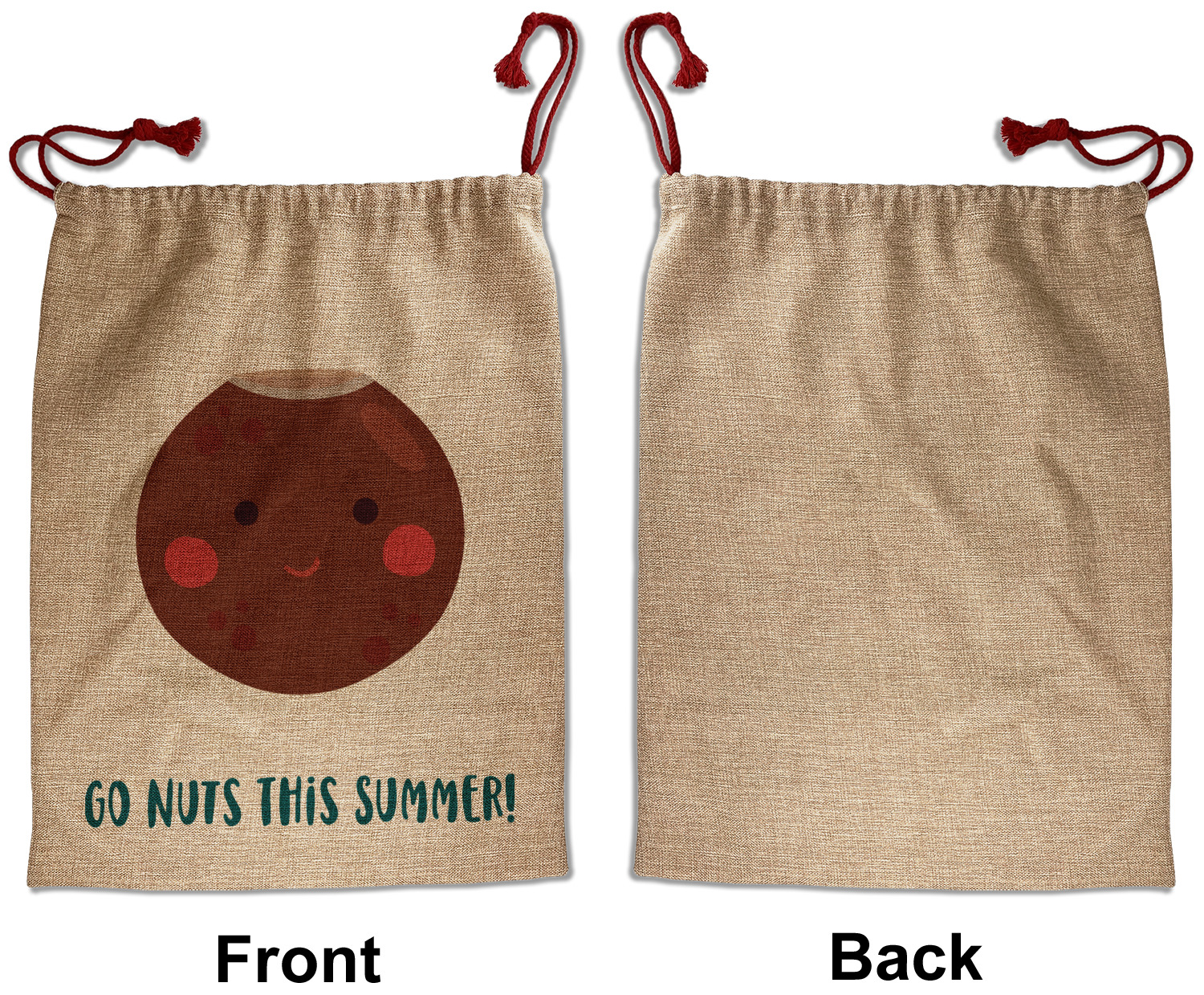 Our Santa sacks print your design on the burlap material giving it a nice rustic, natural design! The burlap material is also machine washable and wrinkle-free, so feel free to fold and store out Santa bags until the next time you need it! Secure your gifts with our red accent drawstring ties at the top of the sack so the mystery of your gift stays a surprise until Christmas day. We offer two types of printing- one side partial print or double-sided partial printing. Design and personalize your own Santa sack in time for the holidays!