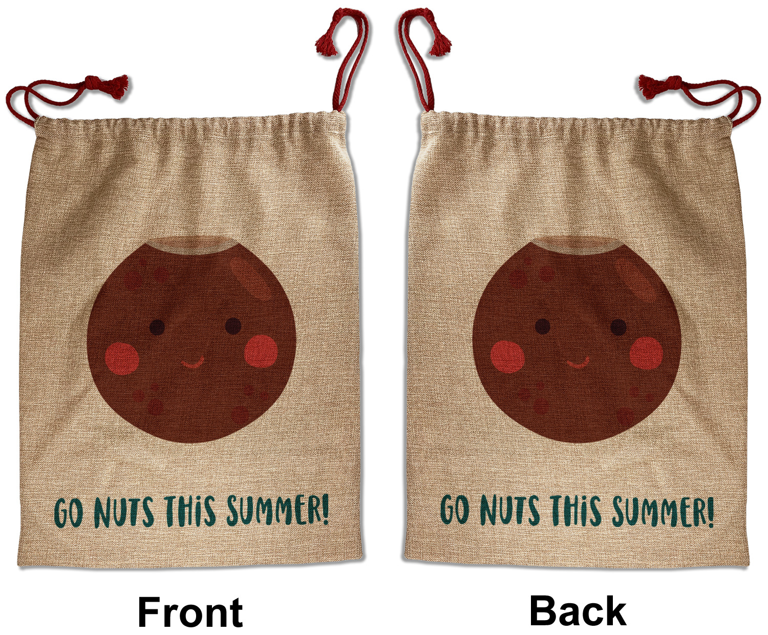 Our Santa sacks print your design on the burlap material giving it a nice rustic, natural design! The burlap material is also machine washable and wrinkle-free, so feel free to fold and store out Santa bags until the next time you need it! Secure your gifts with our red accent drawstring ties at the top of the sack so the mystery of your gift stays a surprise until Christmas day. We offer two types of printing- one side partial print or double-sided partial printing. Design and personalize your own Santa sack in time for the holidays!